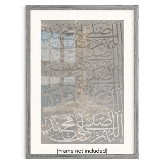 Salutations Upon The Prophet (Pbuh) | Islamic Art Poster Print (Silver/Grey Tones)