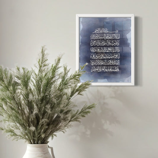 Ayatul Kursi - Watercolour Calligraphy Abstract (Blue)