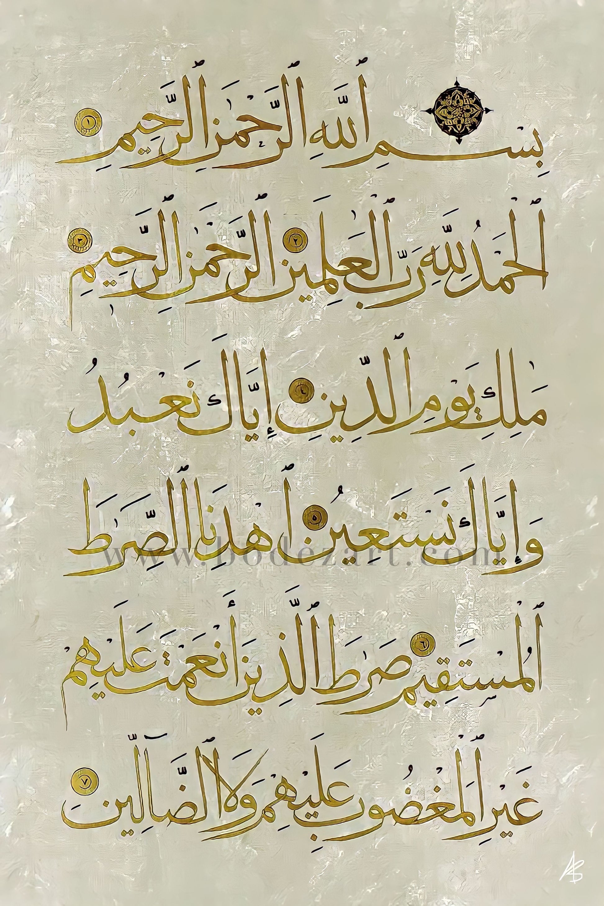 Surah Al-Fatiha (in Arabic text: الفاتحة) is the 1st chapter of the Qur’an. The surah titled in English means “The Opening” and it consists of 7 verses.