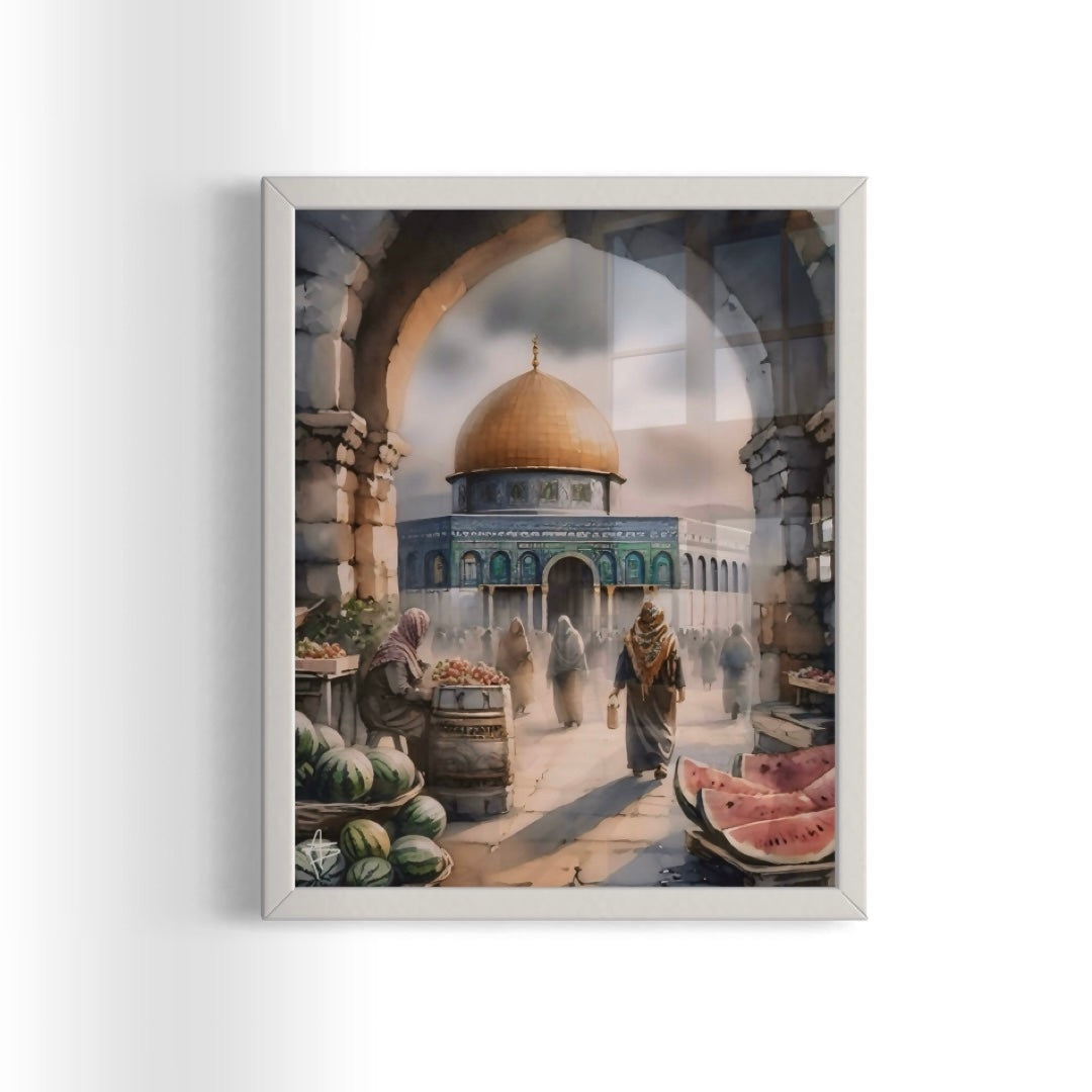 Al Quds Market | Watercolour - Framed Islamic Art Print