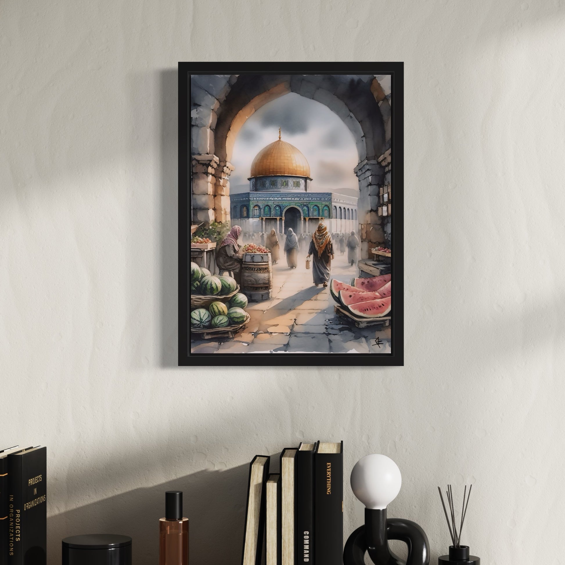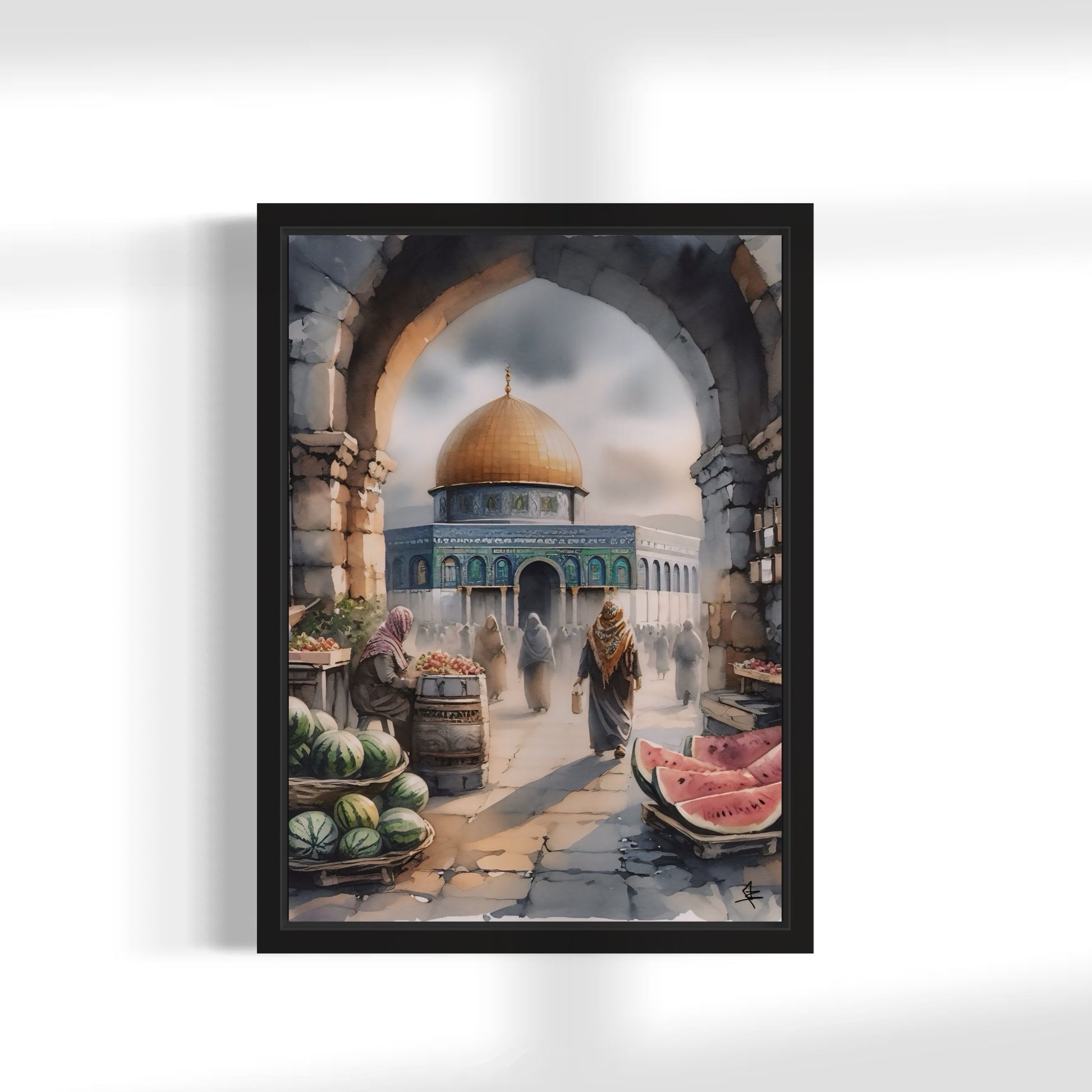 Al Quds Market - Watercolour Palestine | Framed Canvas Print