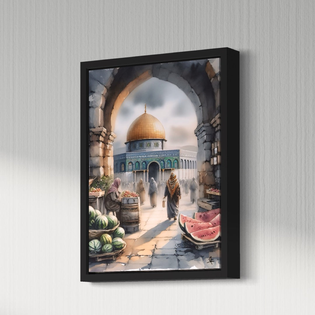 Title: Al Quds Market - Watercolour Palestine | Framed Canvas Print