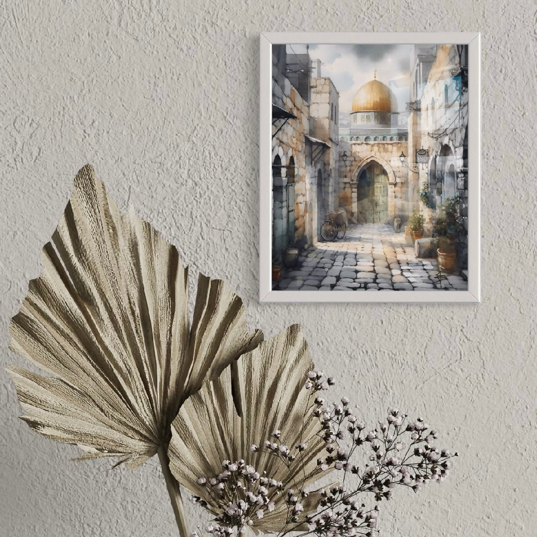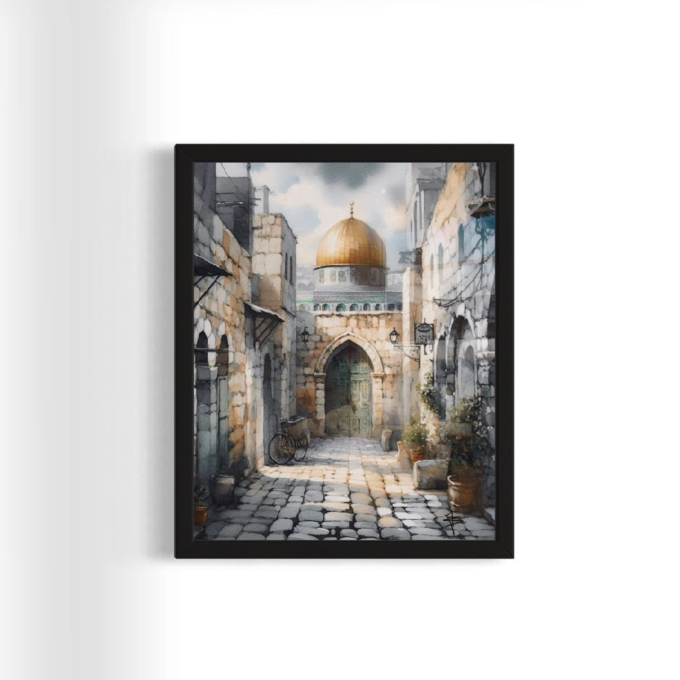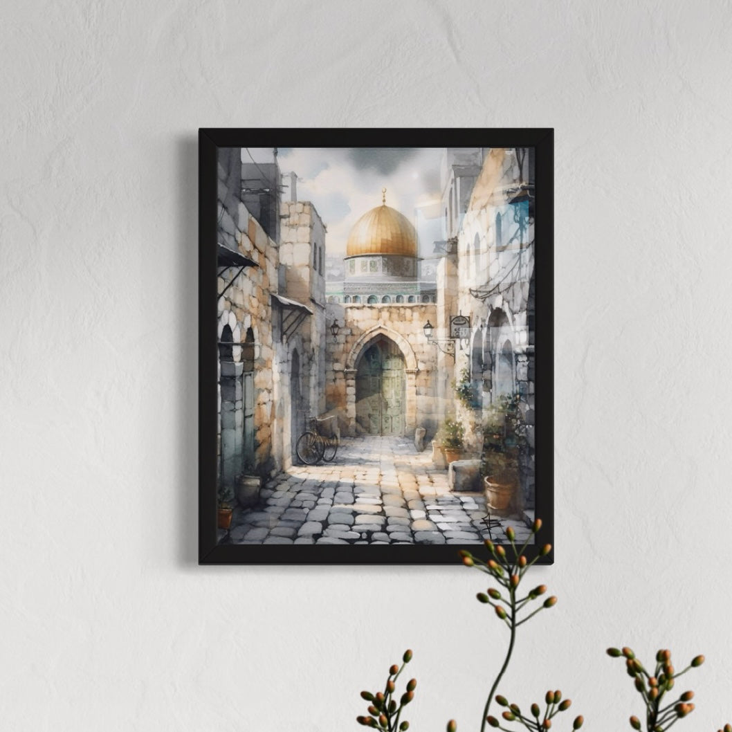 Title:ย Al Quds | Watercolourย Framed Islamic Art Print.