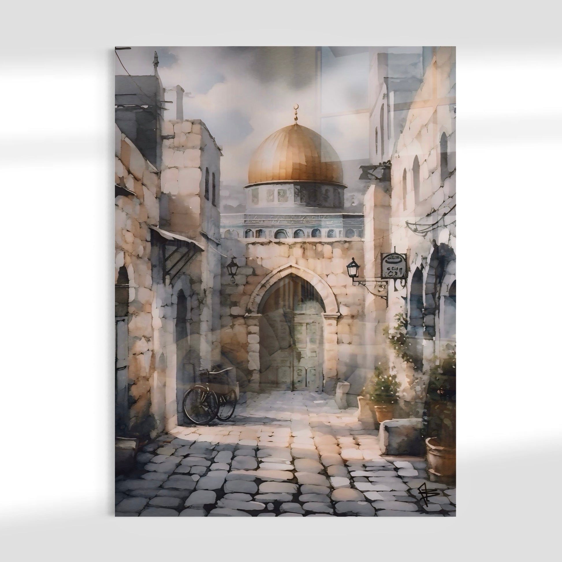Title: Al Quds | Watercolour - Palestine Glass Wall Art