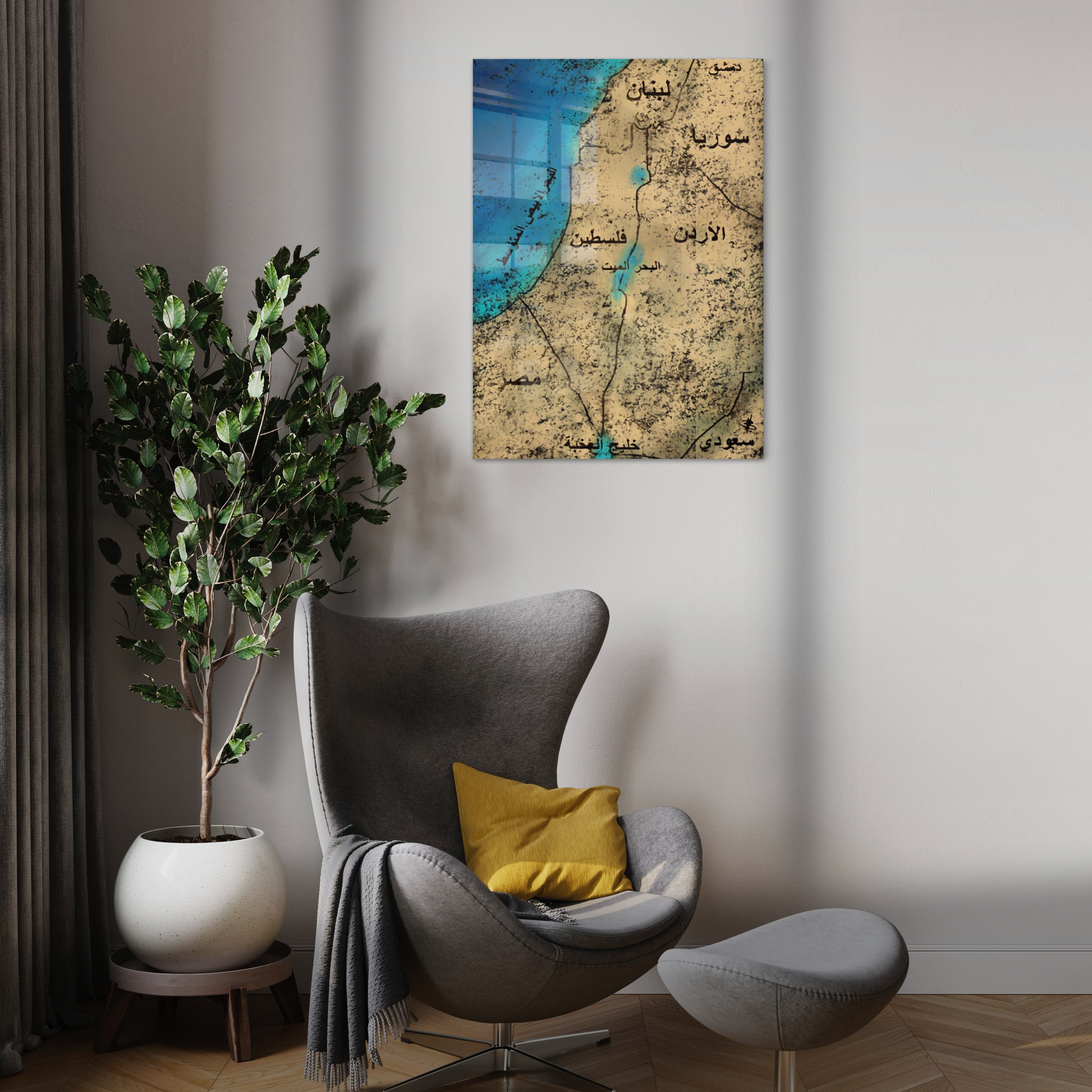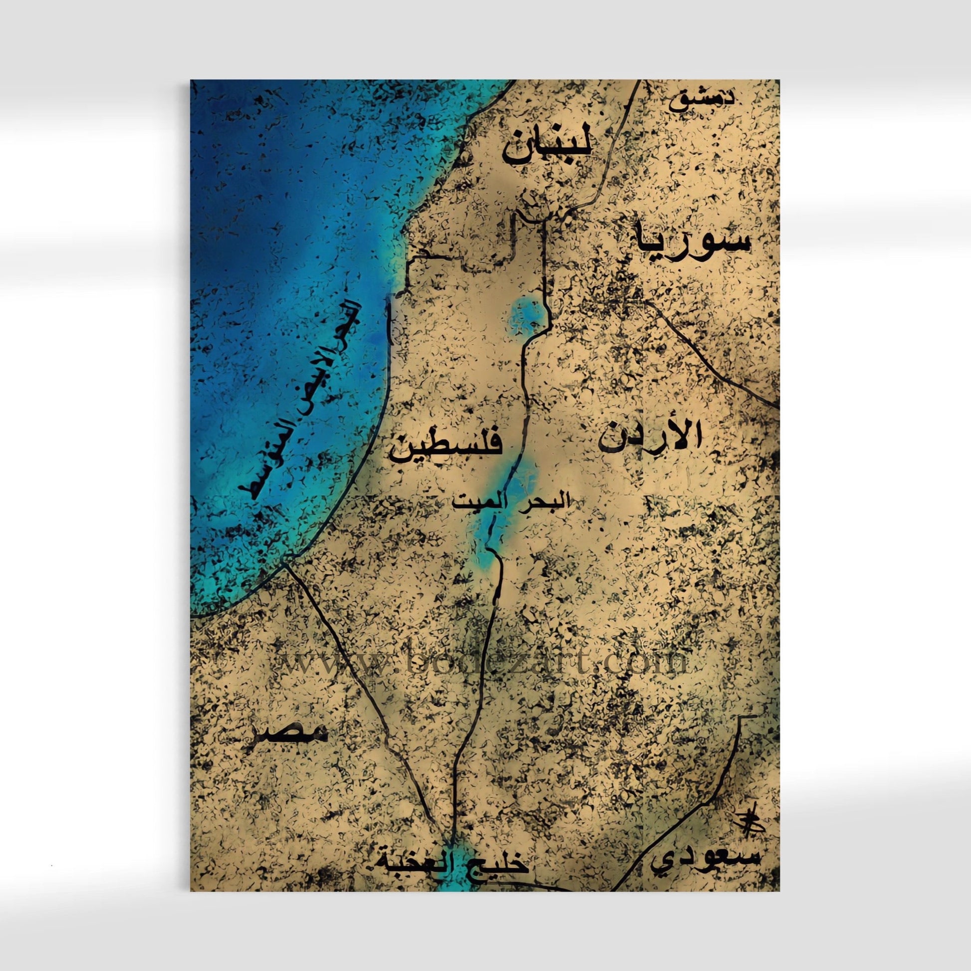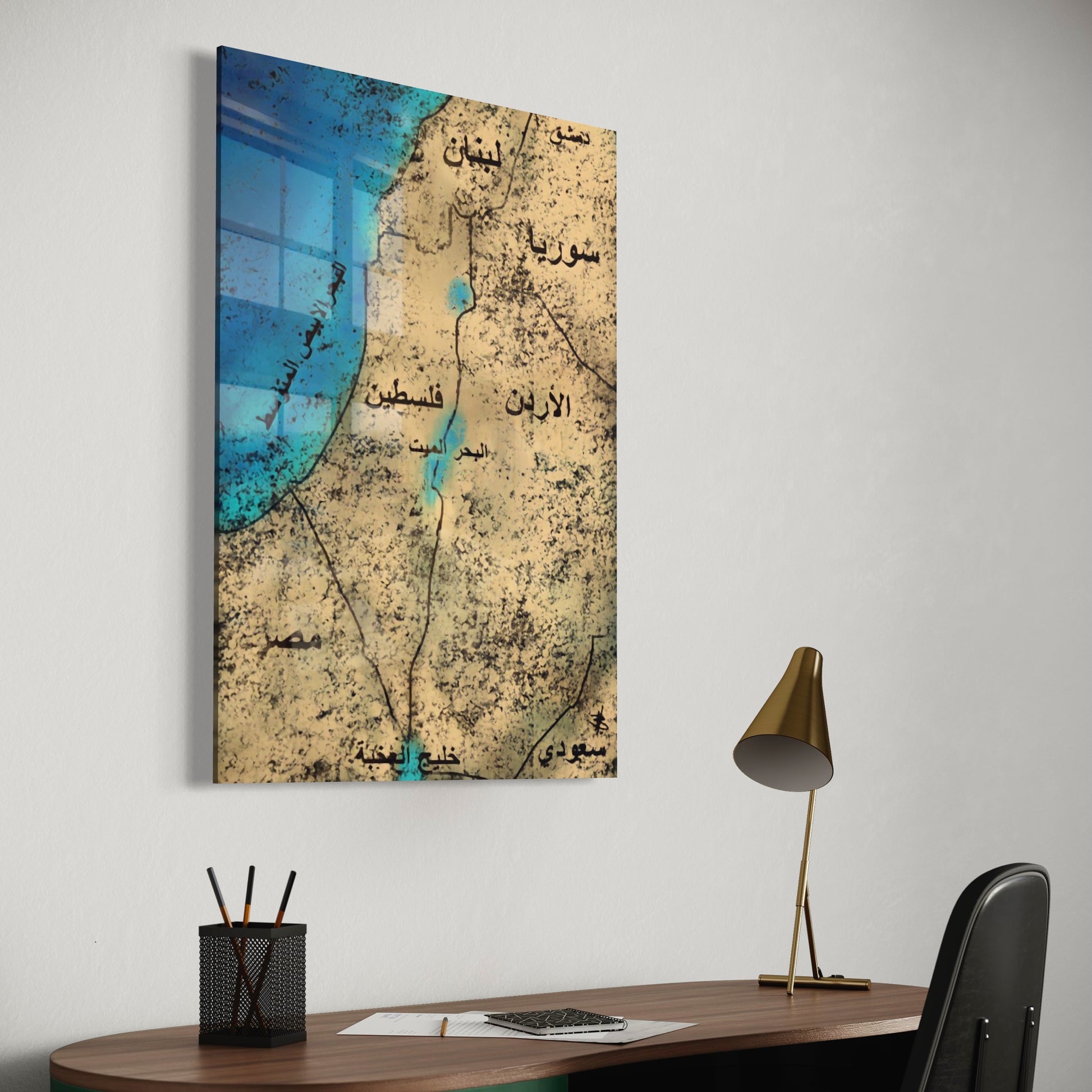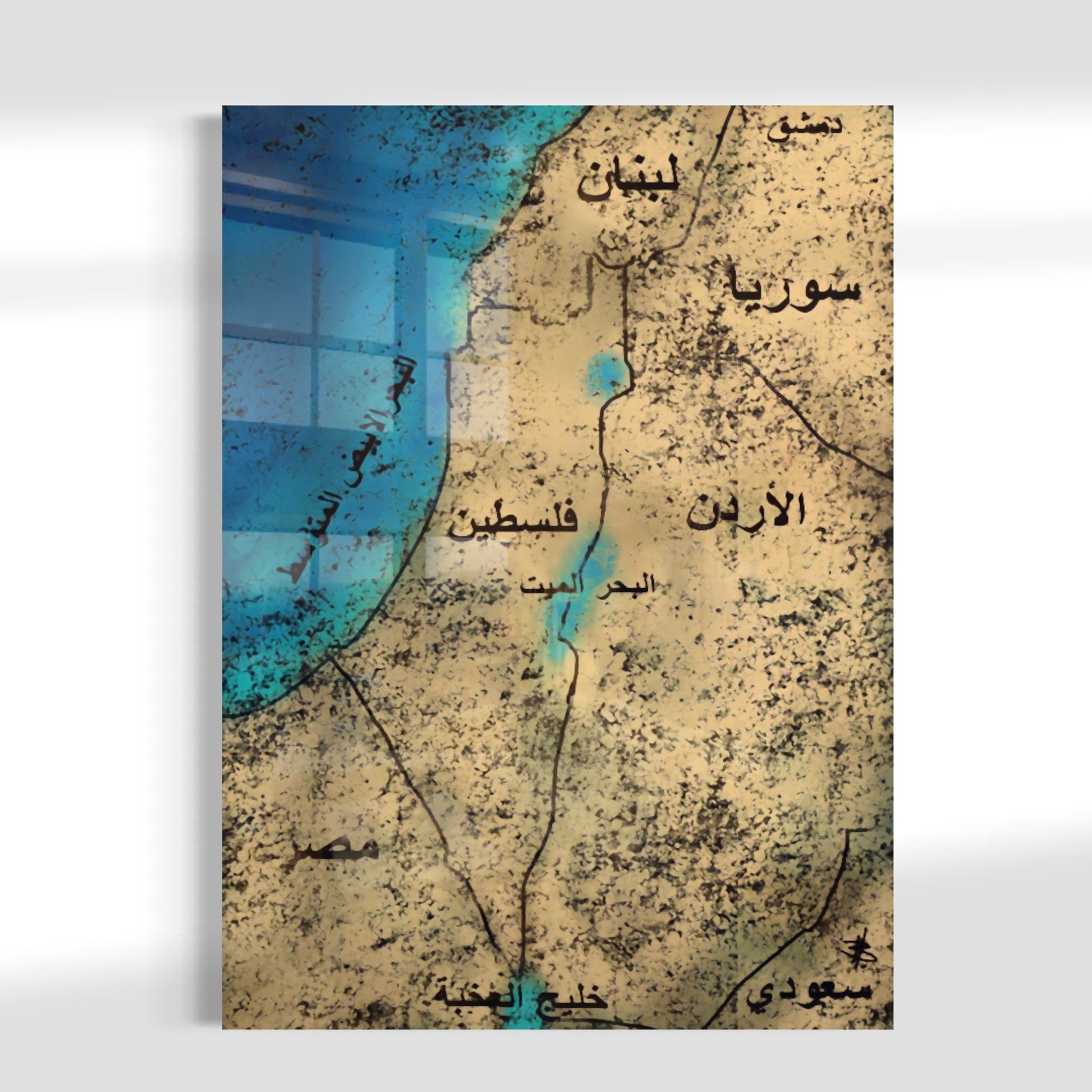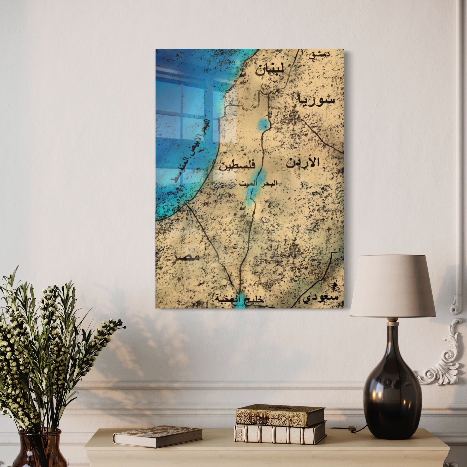 Title: Al-Sham - Arabic Map Of Country’s East Of The Mediterranean - Glass Wall Art