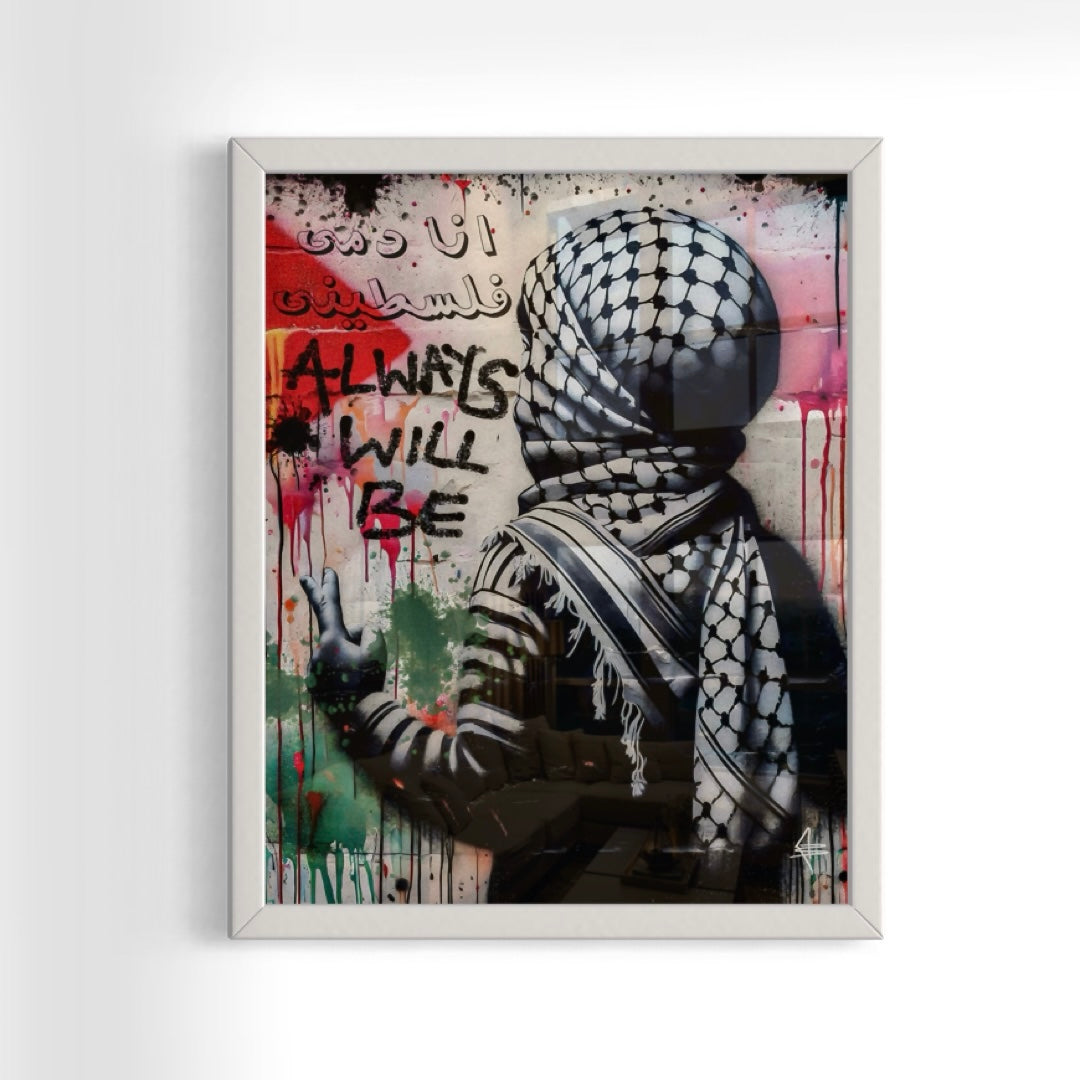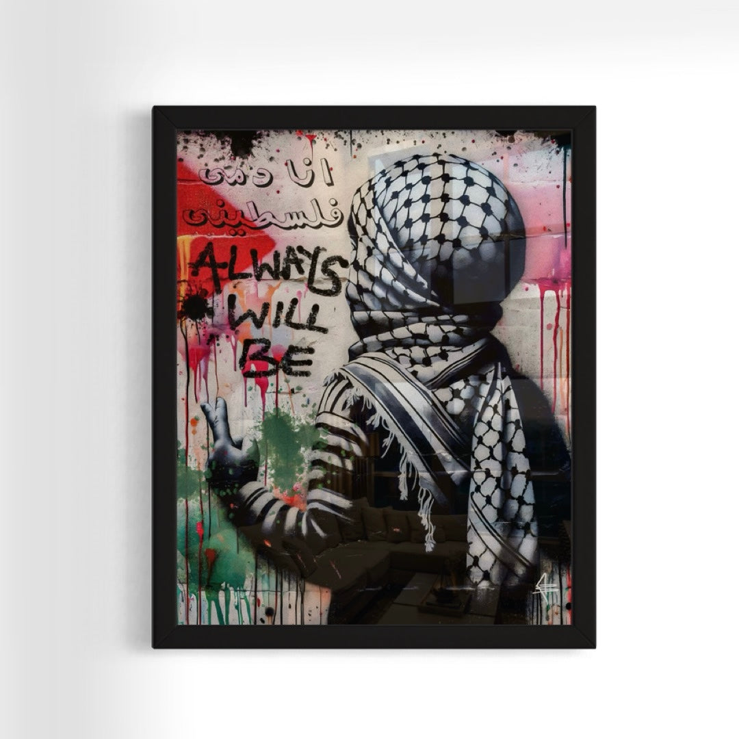 Title: (Ana Dammi Falastini). "My Blood is Pal est inian." | Always Will Be. - Graffiti Framed Art Print