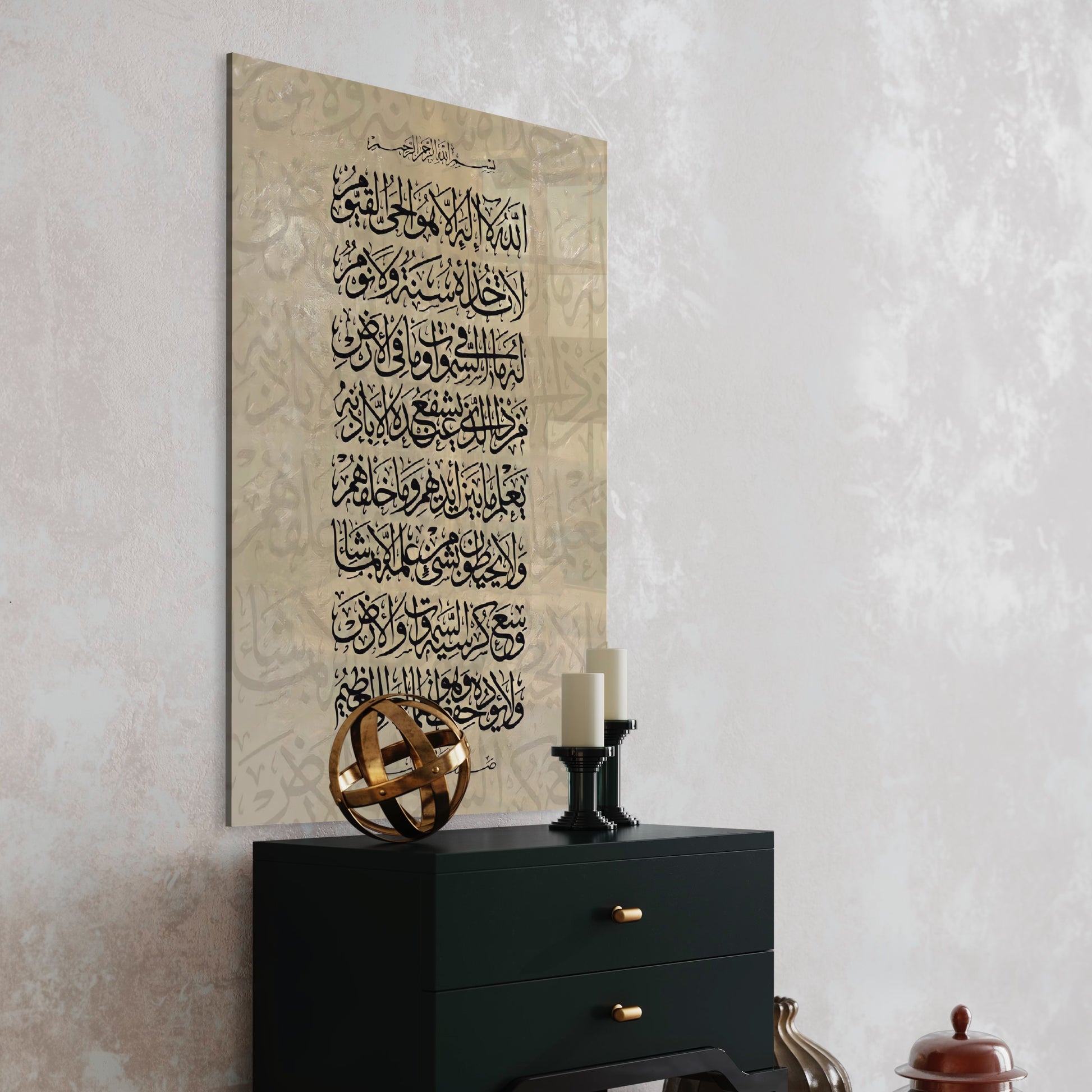 Title: Ayatul Kursi (The Throne) - Abstract Islamic Art / Sand - Glass Wall Art