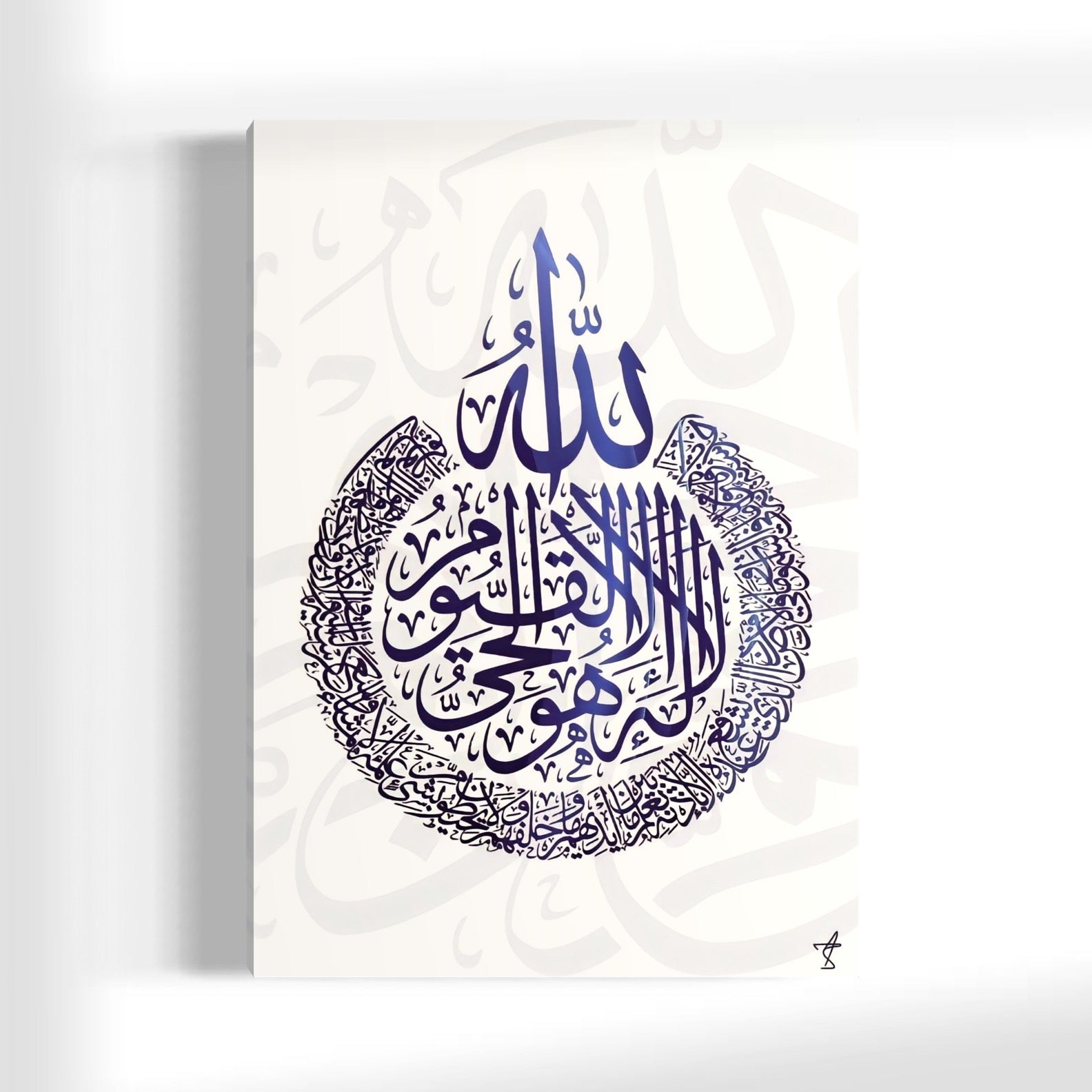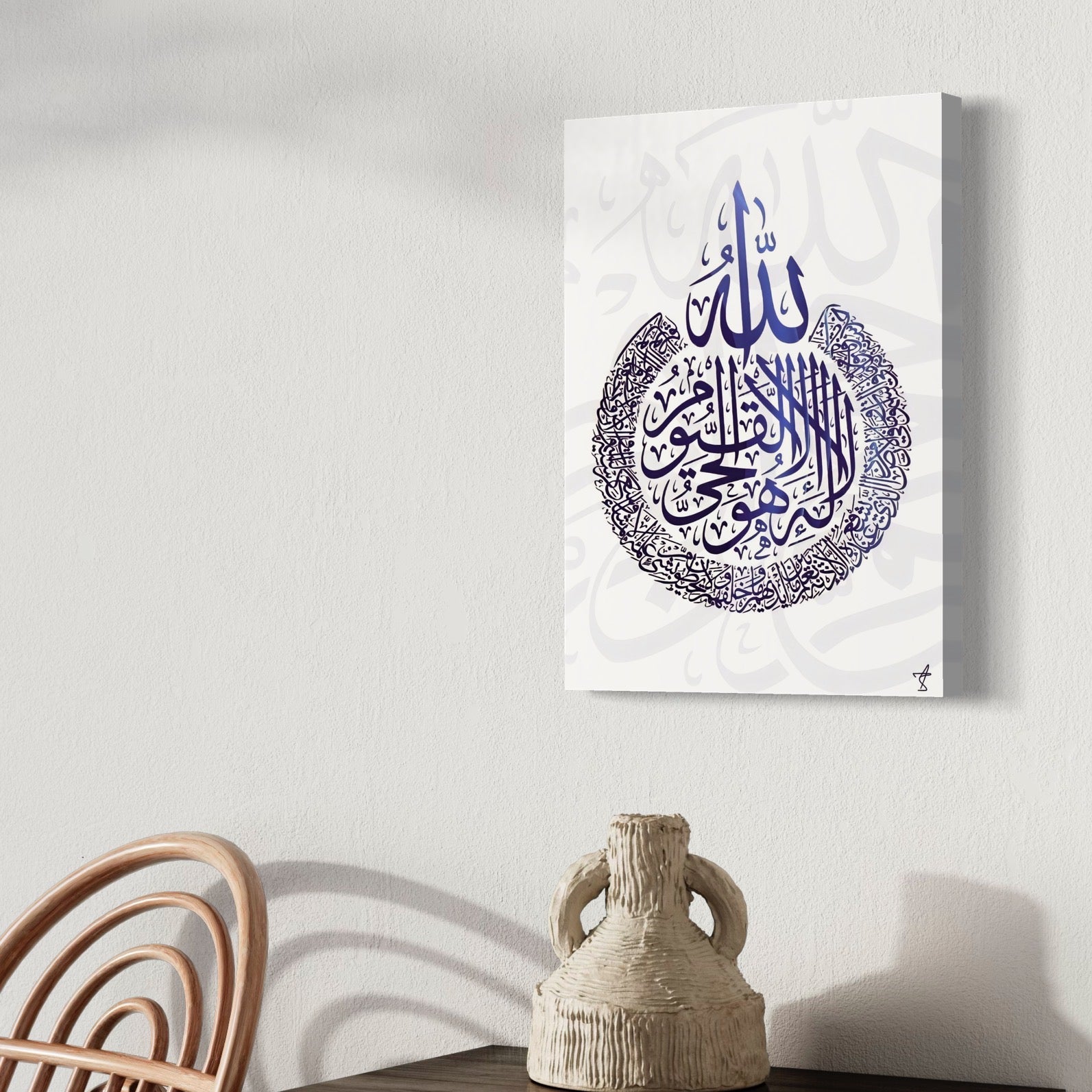 Title: Ayatul Kursi - The Throne - Arabic Calligraphy Blue On White Abstract - Canvas Print.