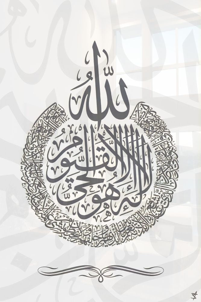 Title: Ayatul Kursi - The Throne - Arabic Calligraphy Grey On White Abstract
