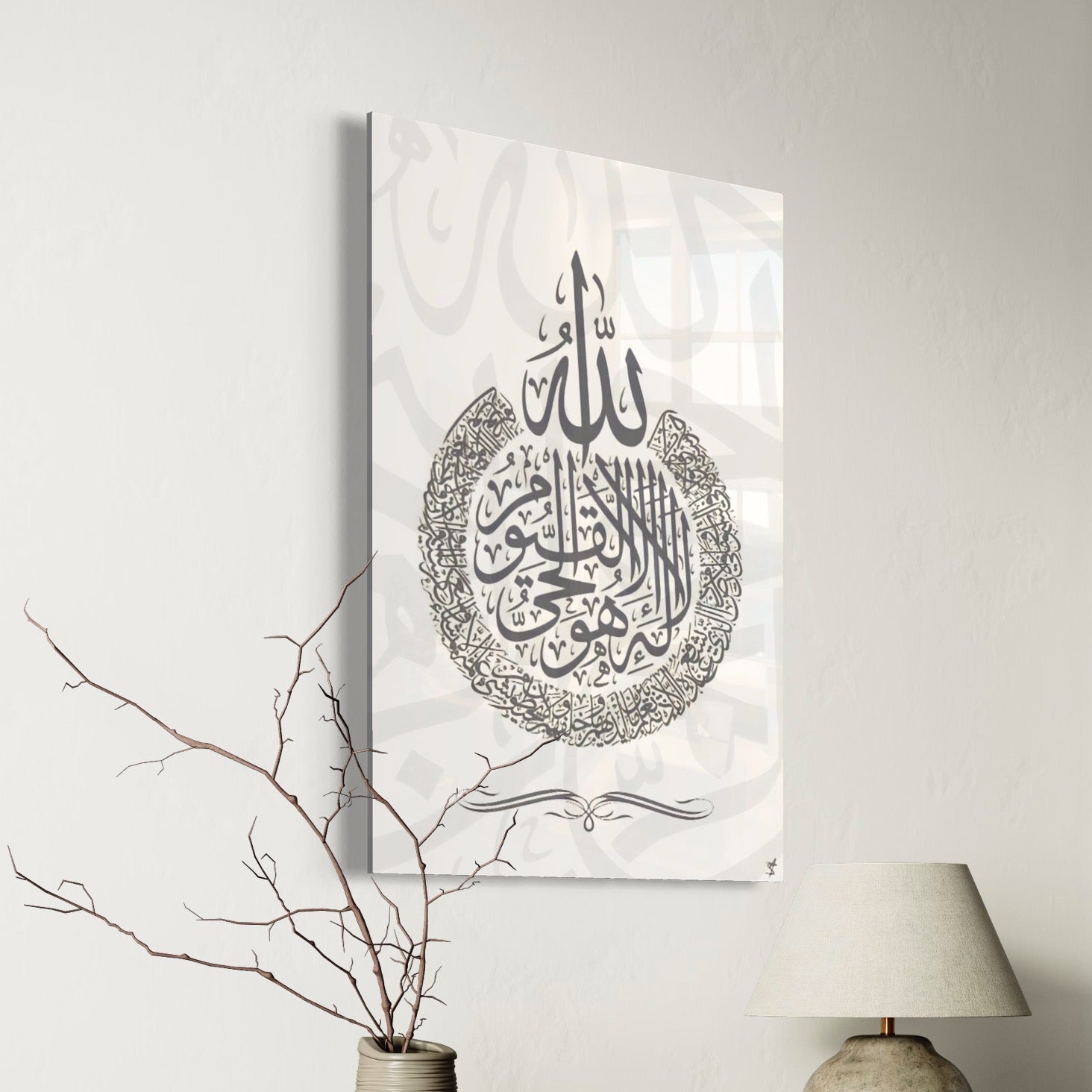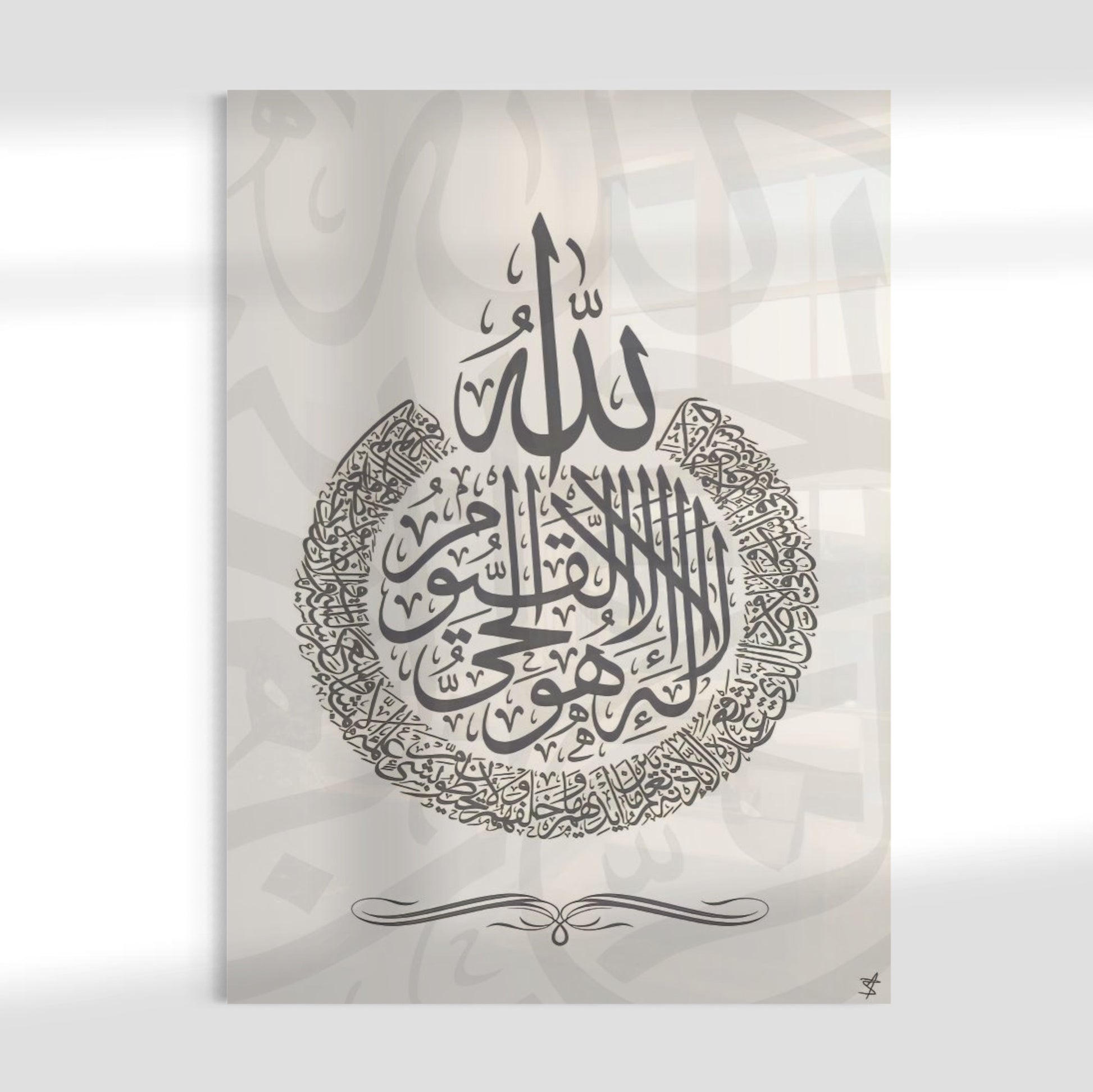 Ayatul Kursi - The Throne - Arabic Calligraphy Grey On White Abstract - Islamic Glass Wall Art