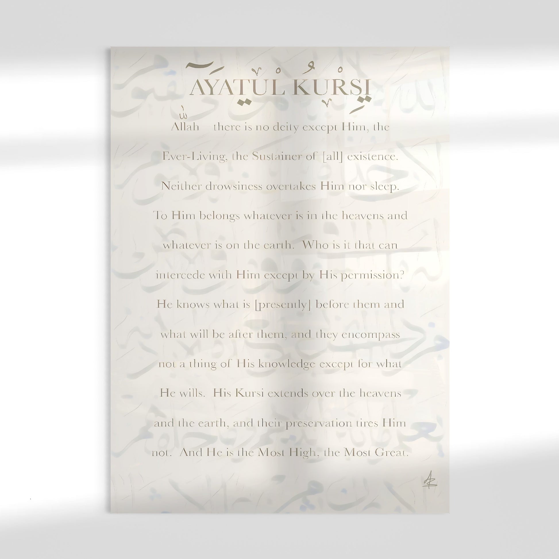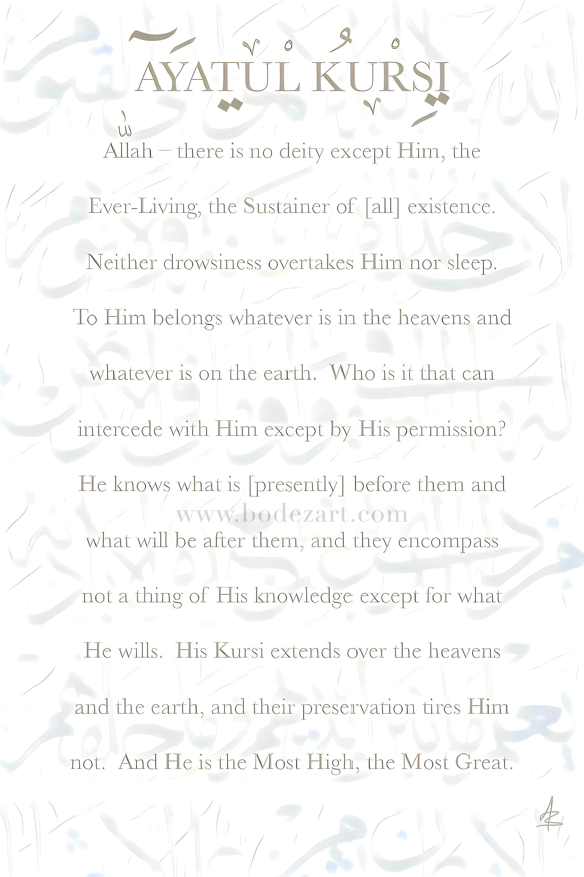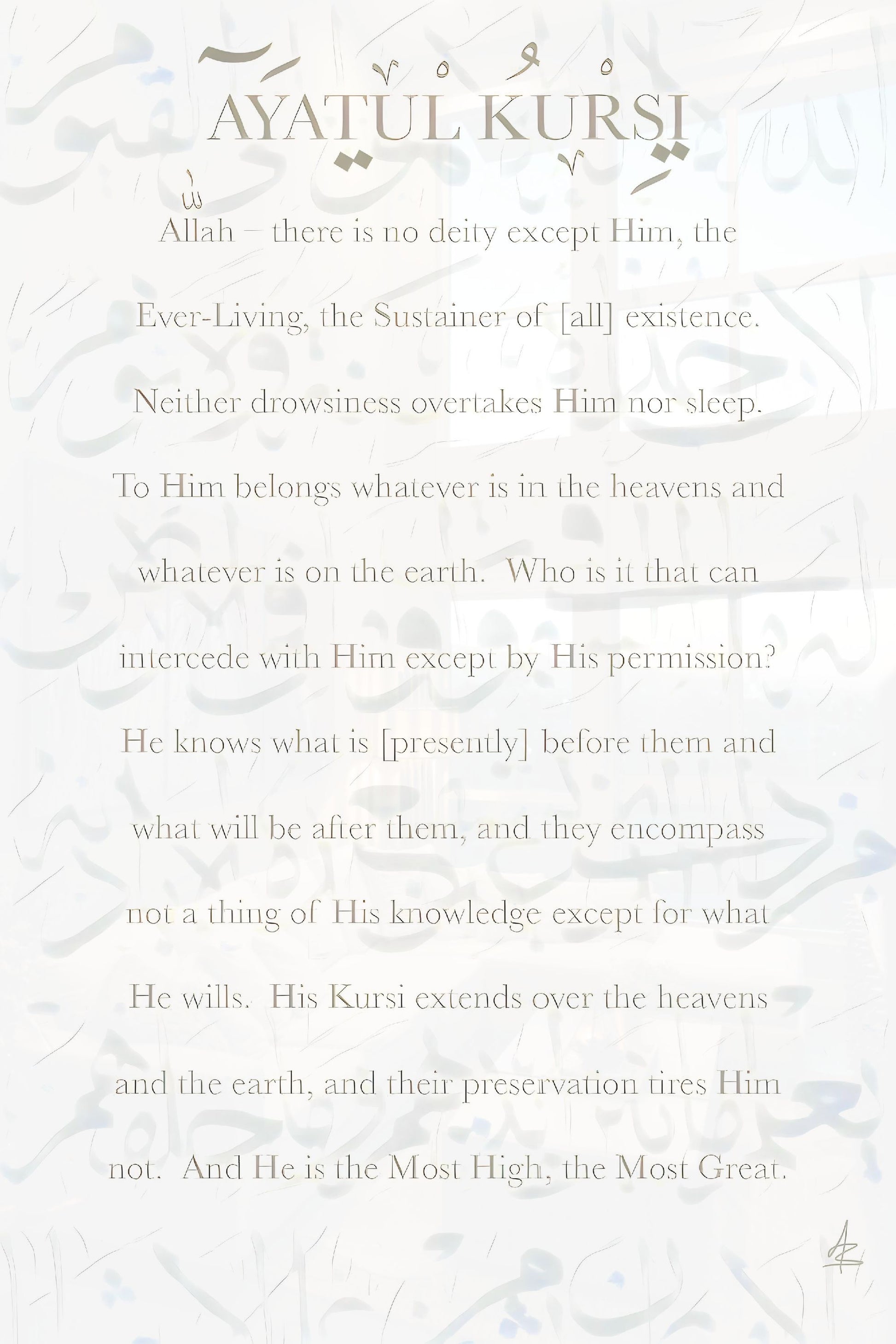 Ayatul Kursi Translation - Abstract Calligraphy