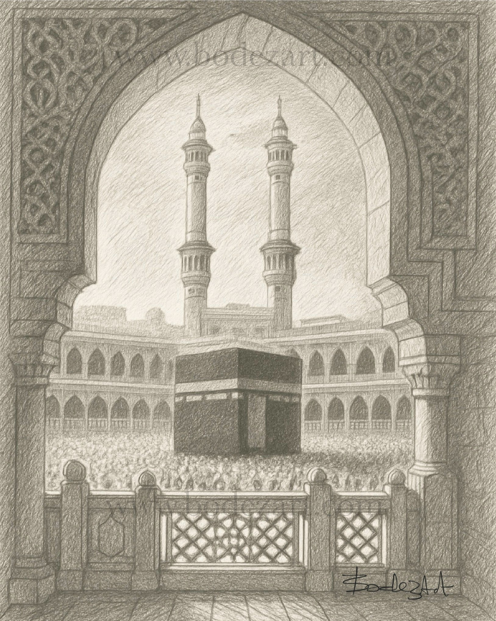 Title: Bayt Allah | House Of Allah - Pencil Sketch Art Print. 1/3