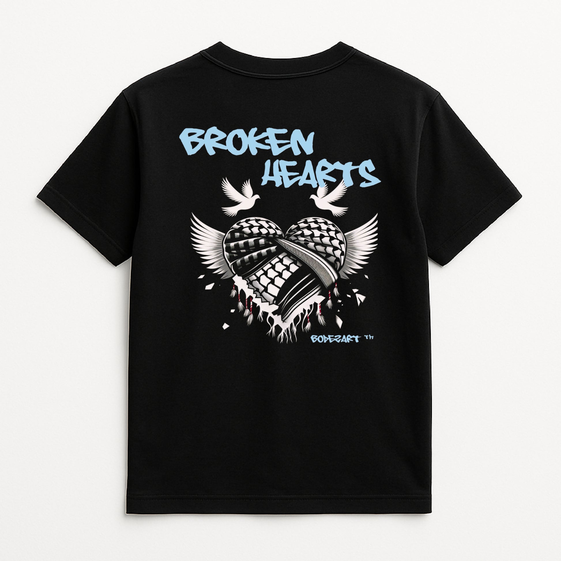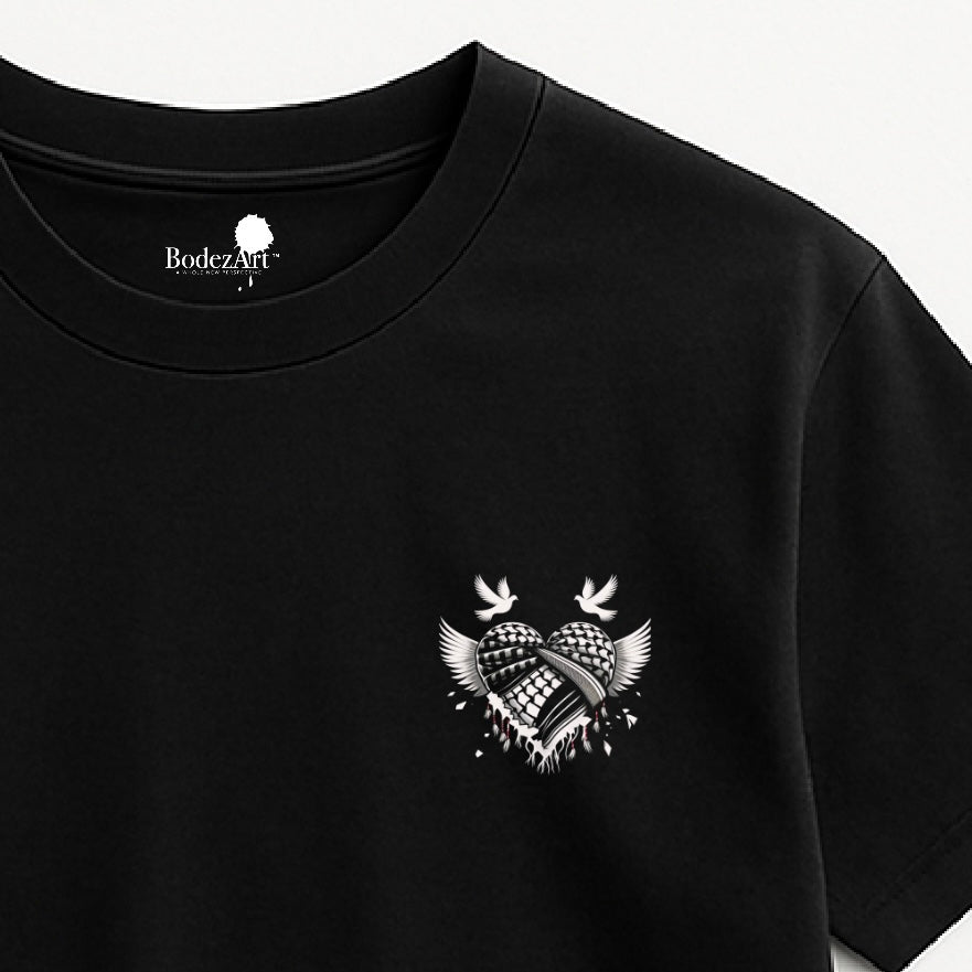 "From the fragments of broken hearts, hope rises. Honoring Palestine's unshakable courage and love."
