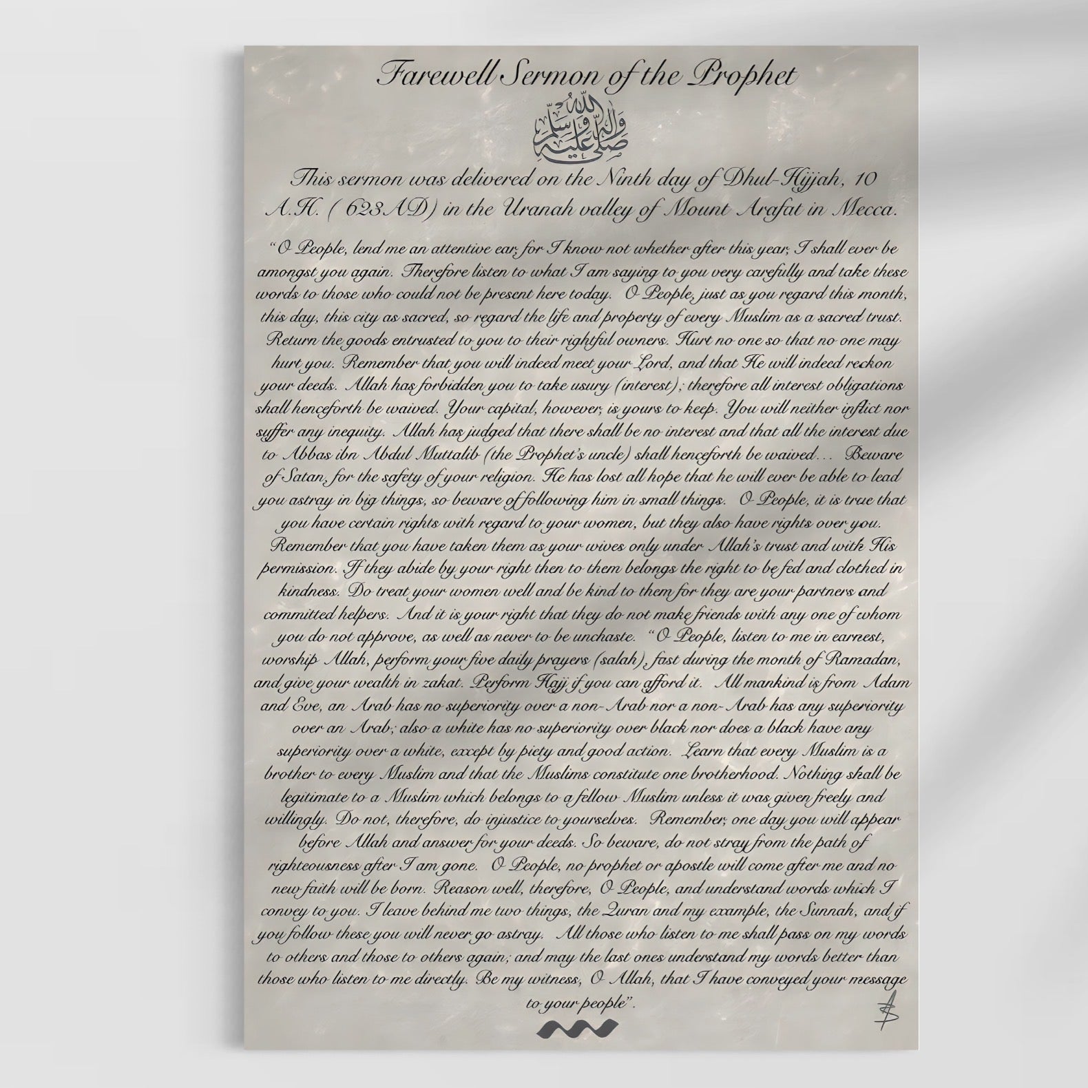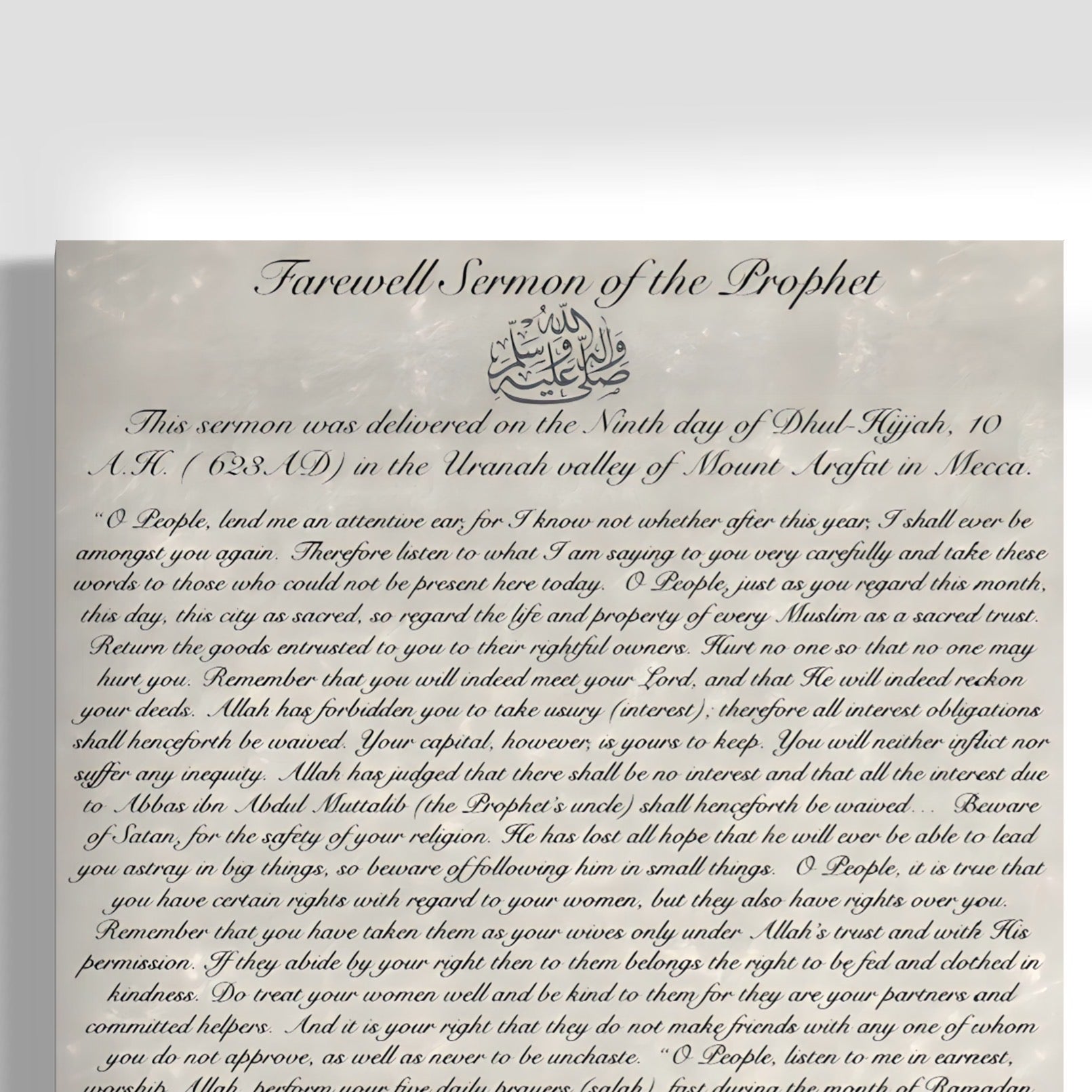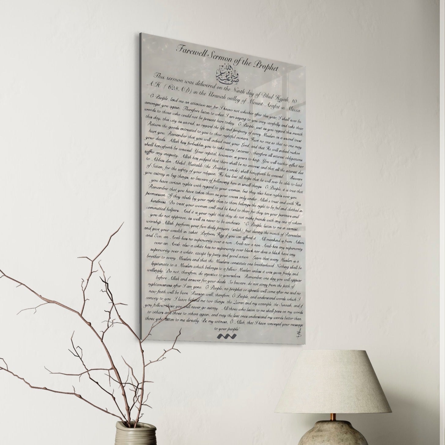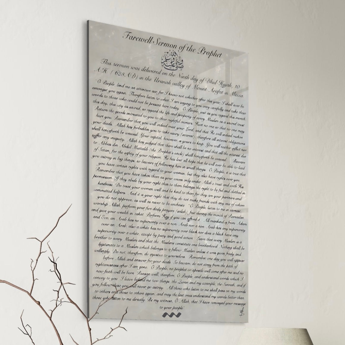 Title: Farewell Sermon of the Prophet Muhammad (SAW) - Islamic Glass Wall Art
