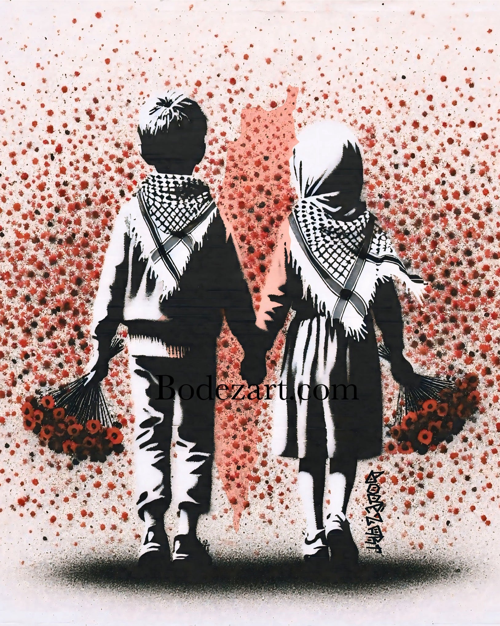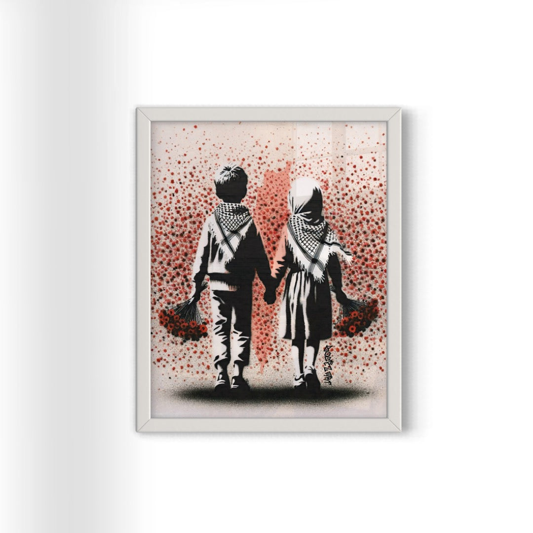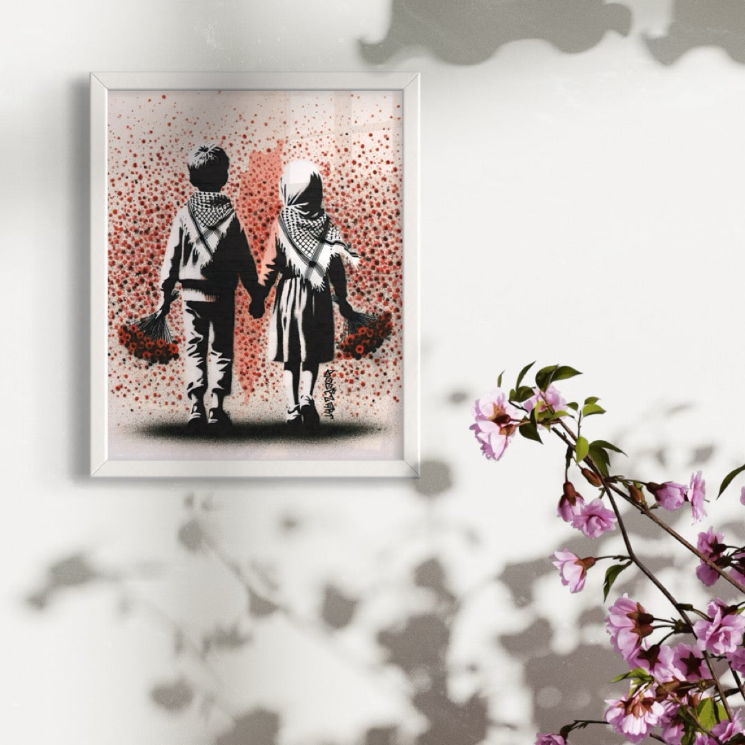 "Solidarity knows no borders; it's the heartbeat of a world united against oppression." This artwork was created in remembrance of all those lives lost in Palestine. ‘Always & Forever in our hearts & prayers’