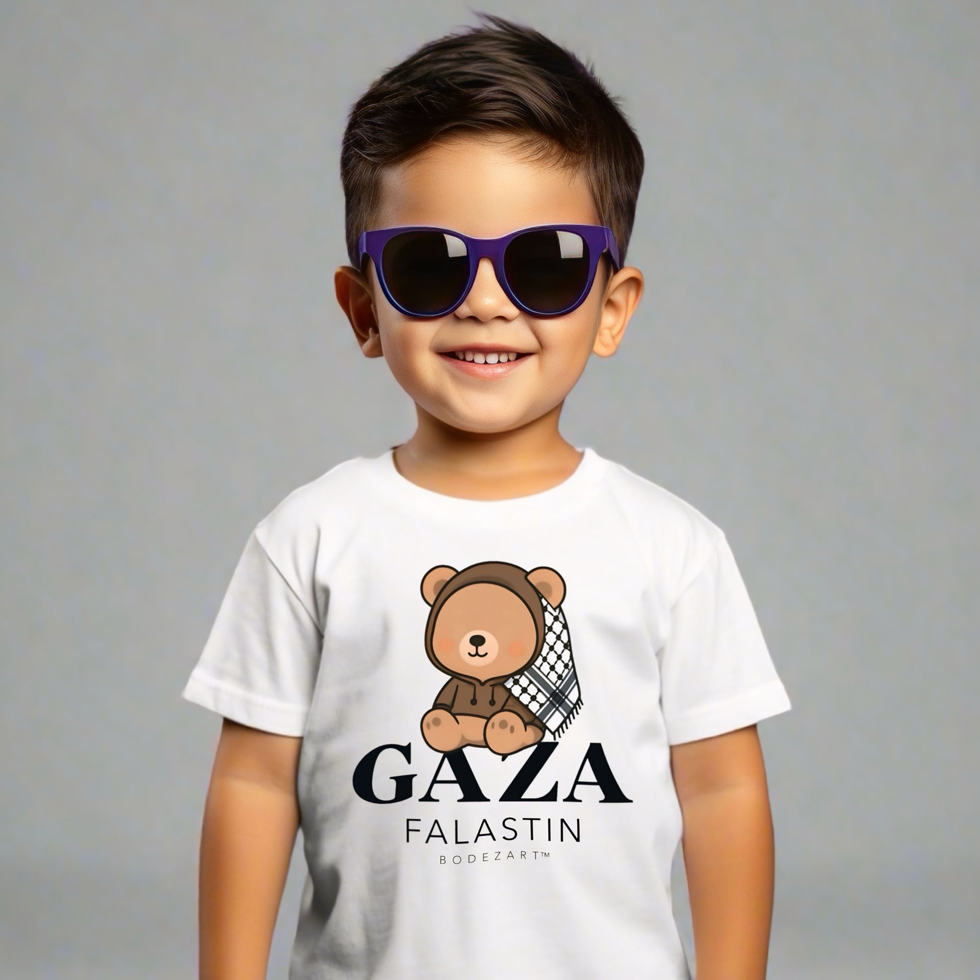 The bear symbolizes innocence, warmth, and resilience. It’s a gentle but powerful reminder that behind every headline, there are lives, dreams, and stories worth holding close. The keffiyeh connects the bear to a long-standing symbol of resistance and cultural pride, while the minimalist design ensures it resonates universally.