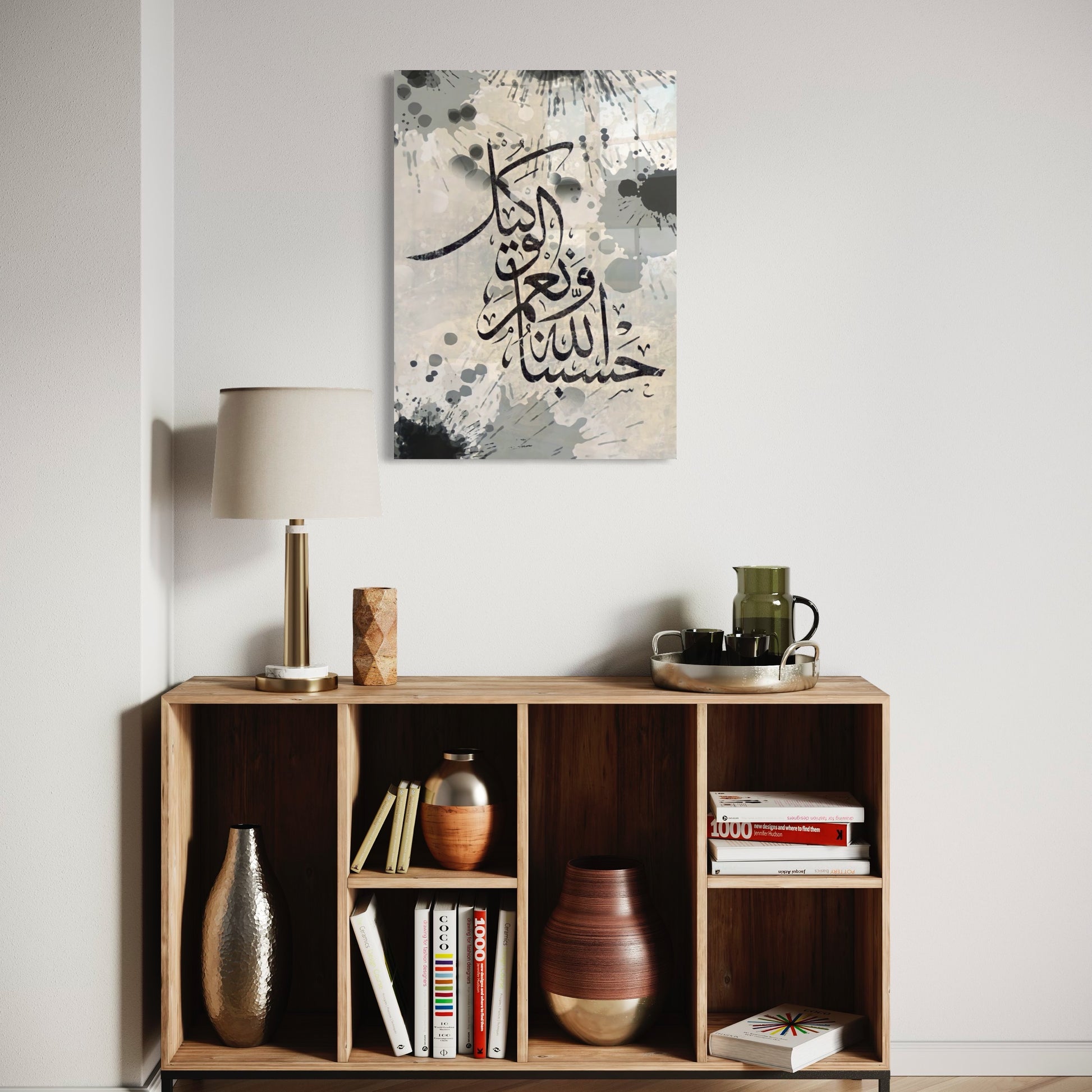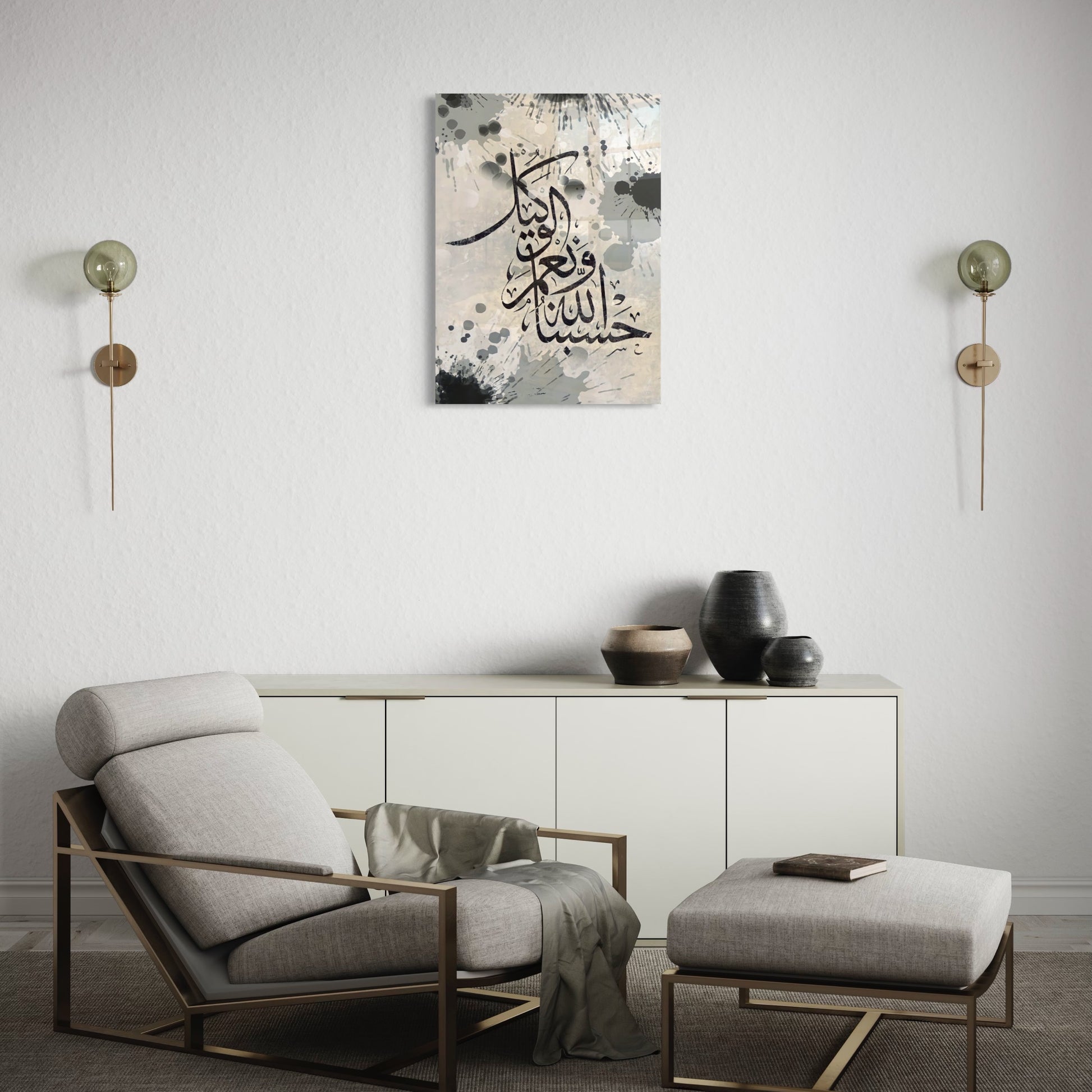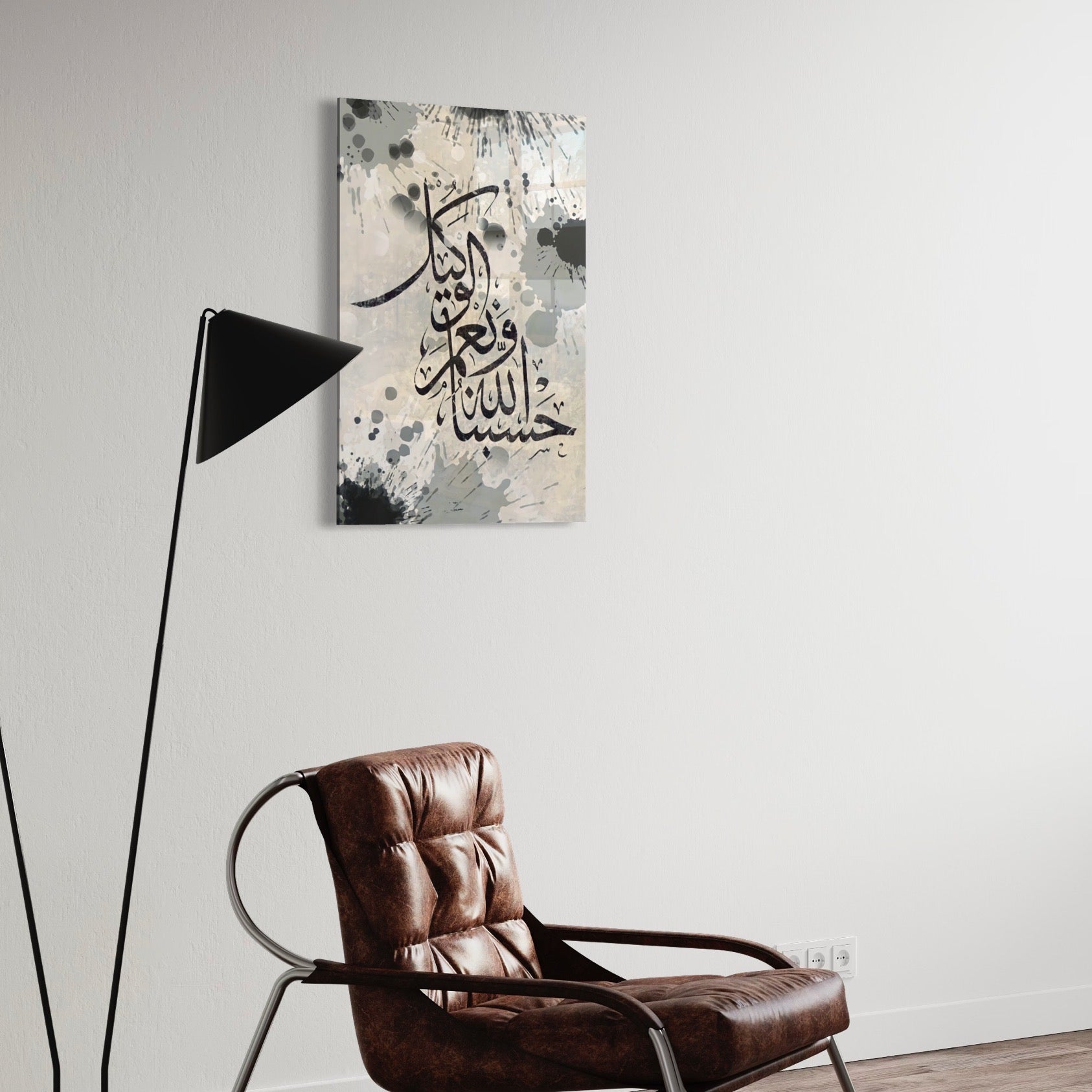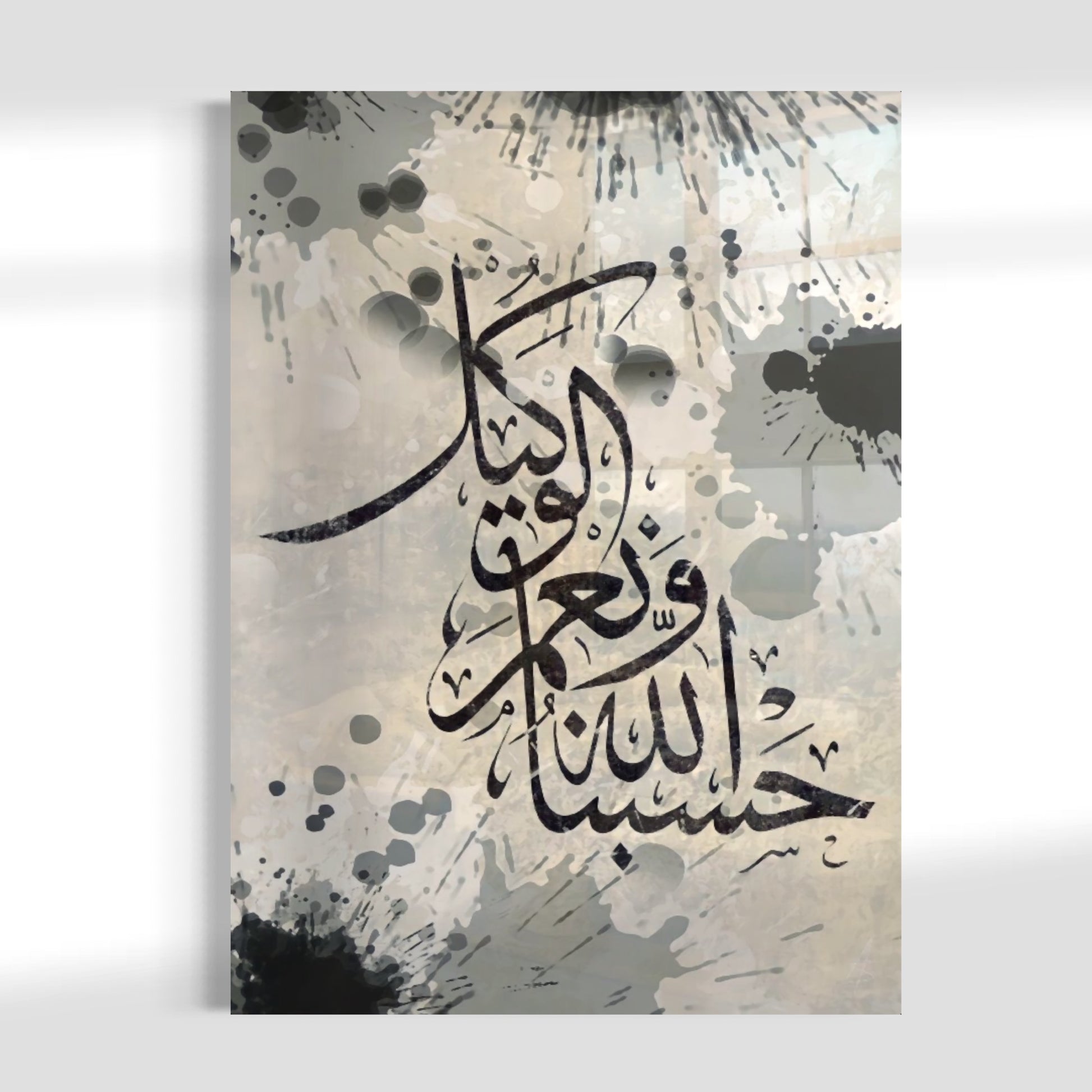 Hasbunallahu Wa Ni'mal-Wakil Calligraphy Splatter - Glass Wall Art