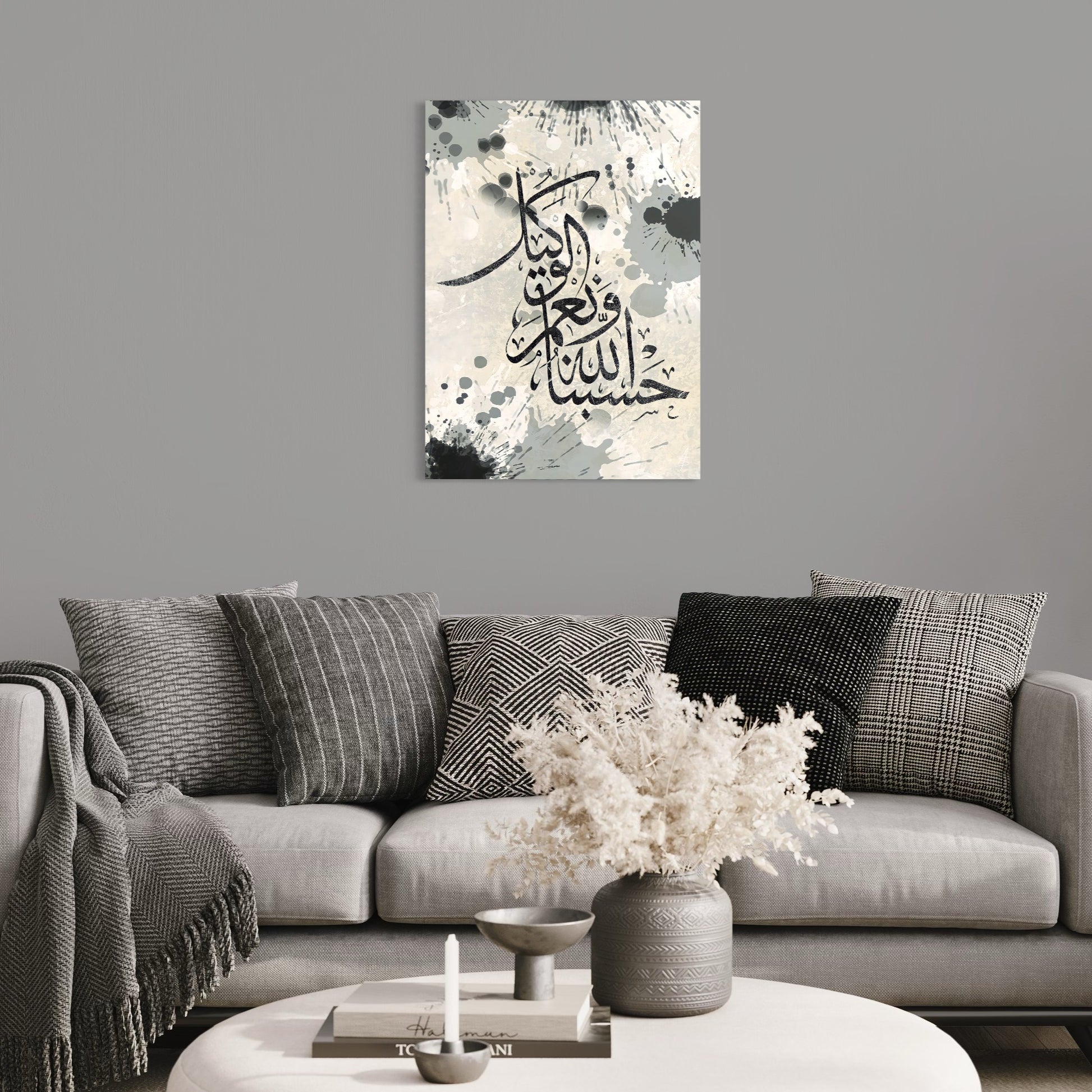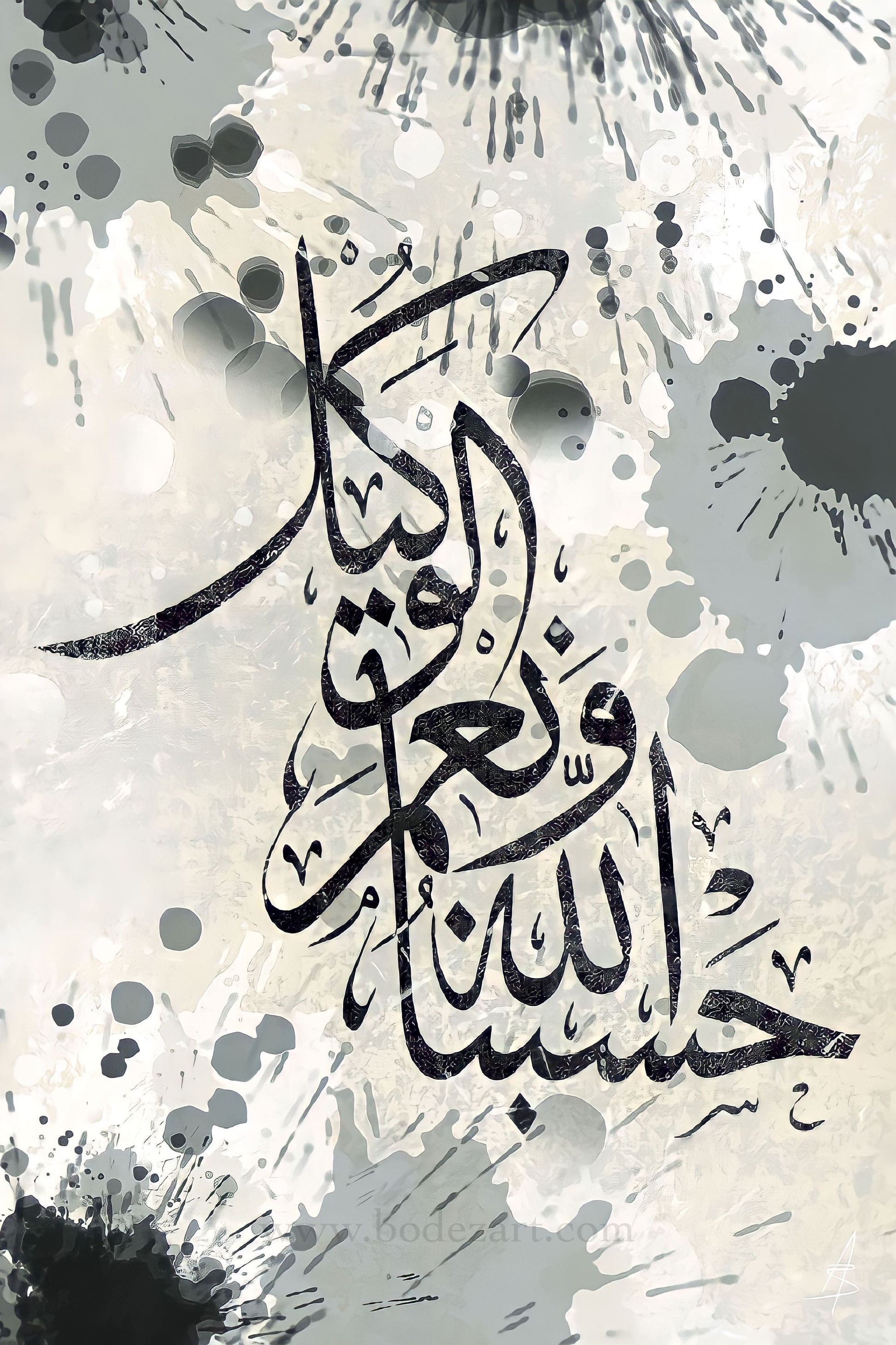 Title: Hasbunallahu Wa Ni'mal-Wakil Calligraphy Splatter