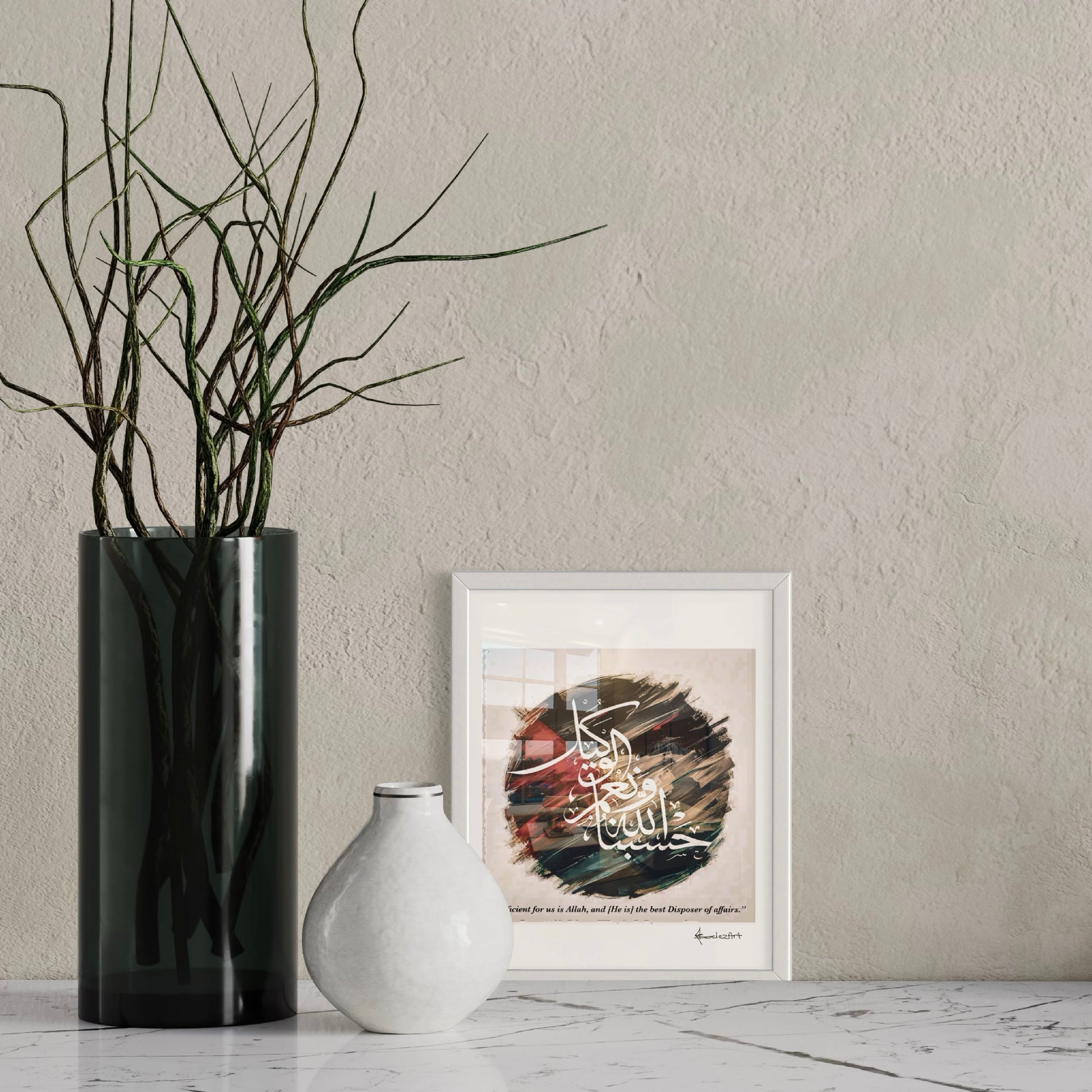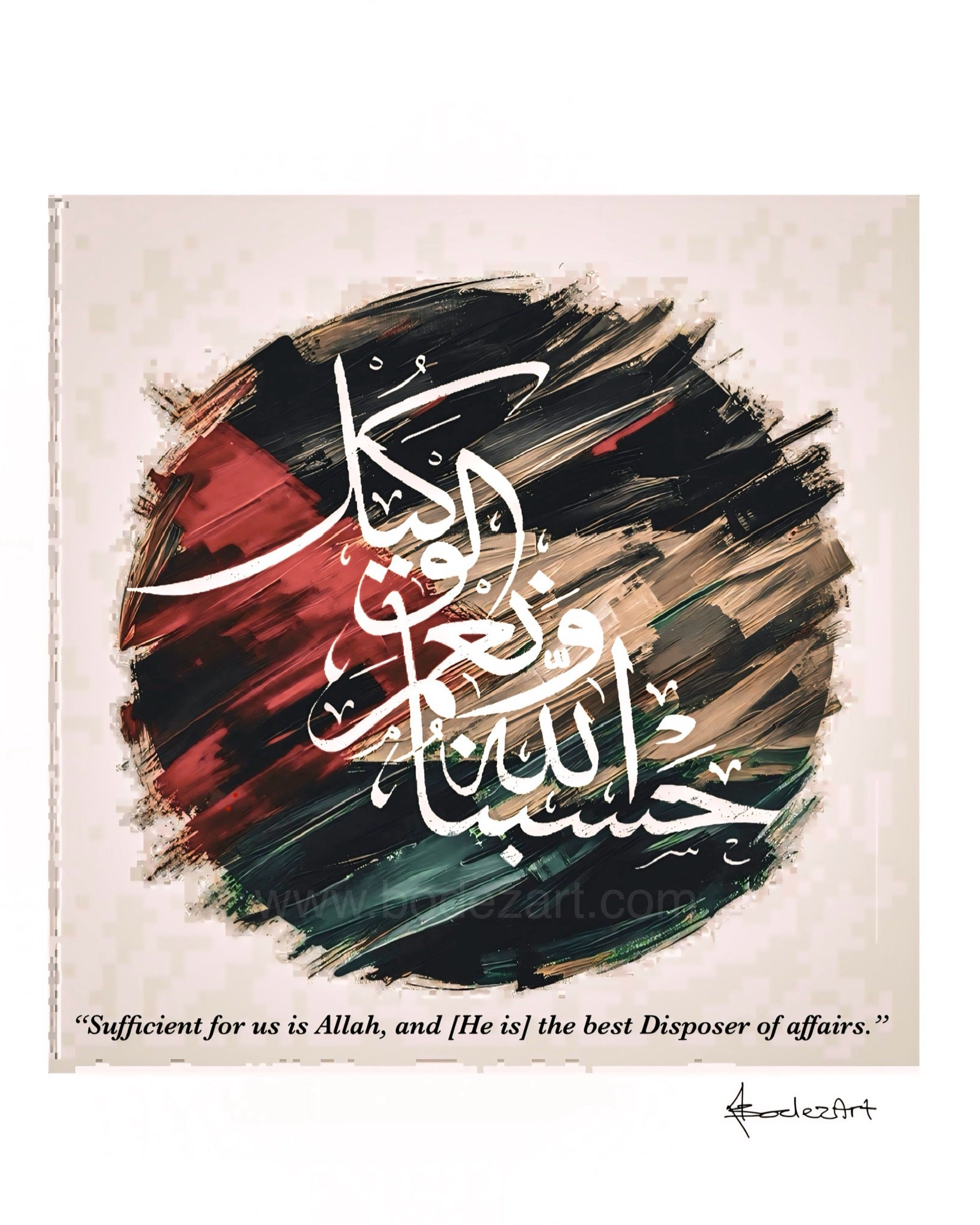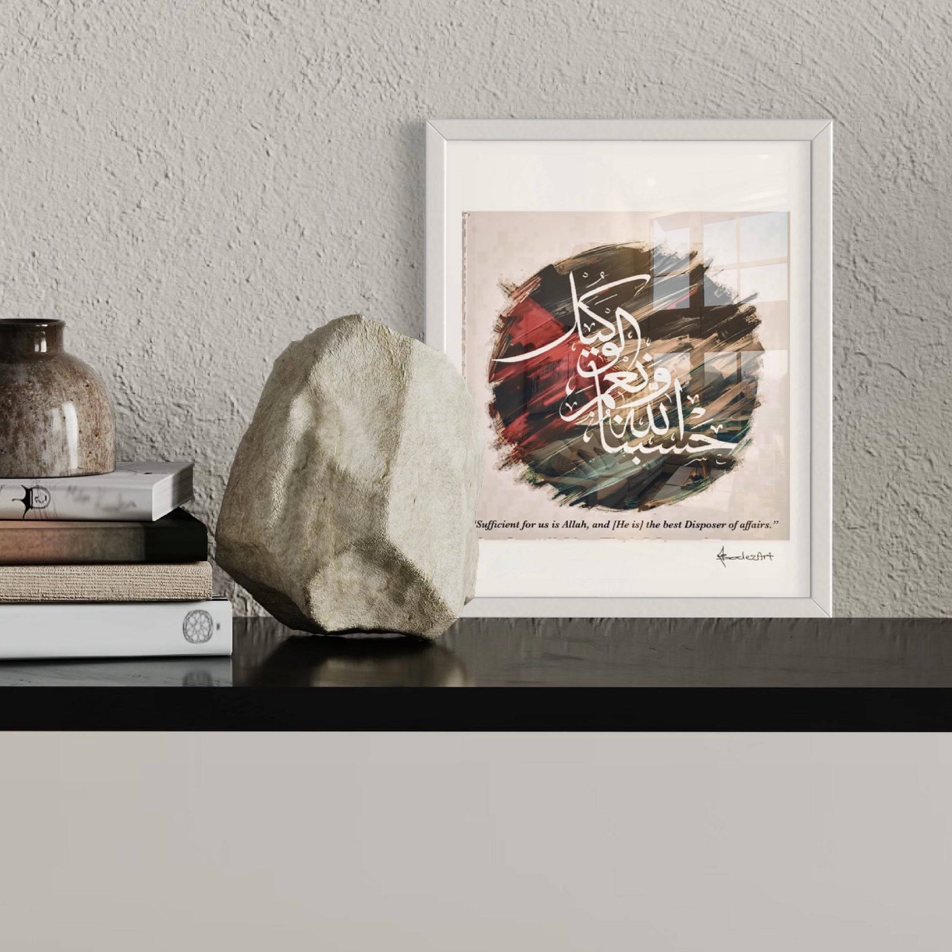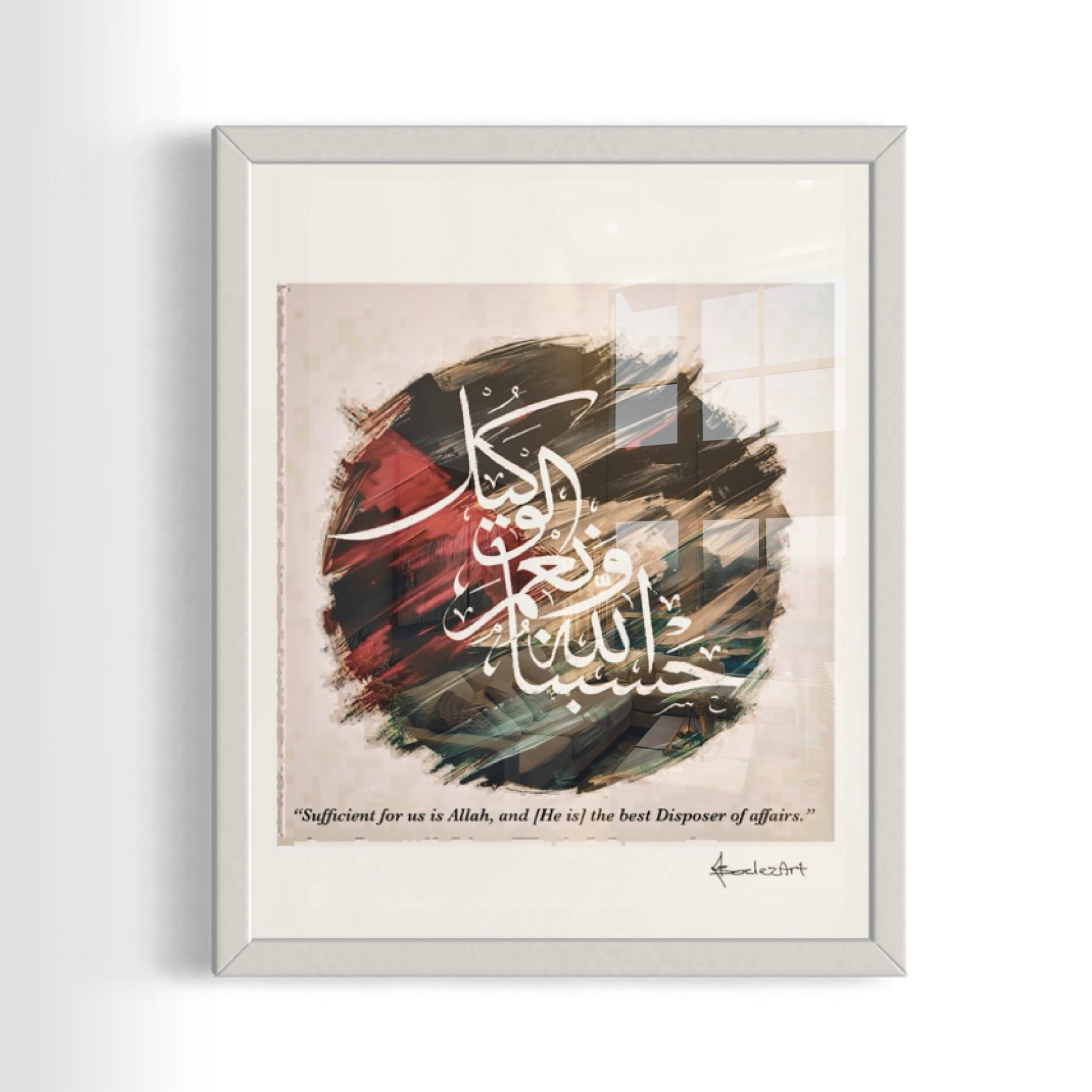 Title: Hasbunallahu Wa-Ni'mal Wakil | Palestine Framed Abstract Calligraphy Print