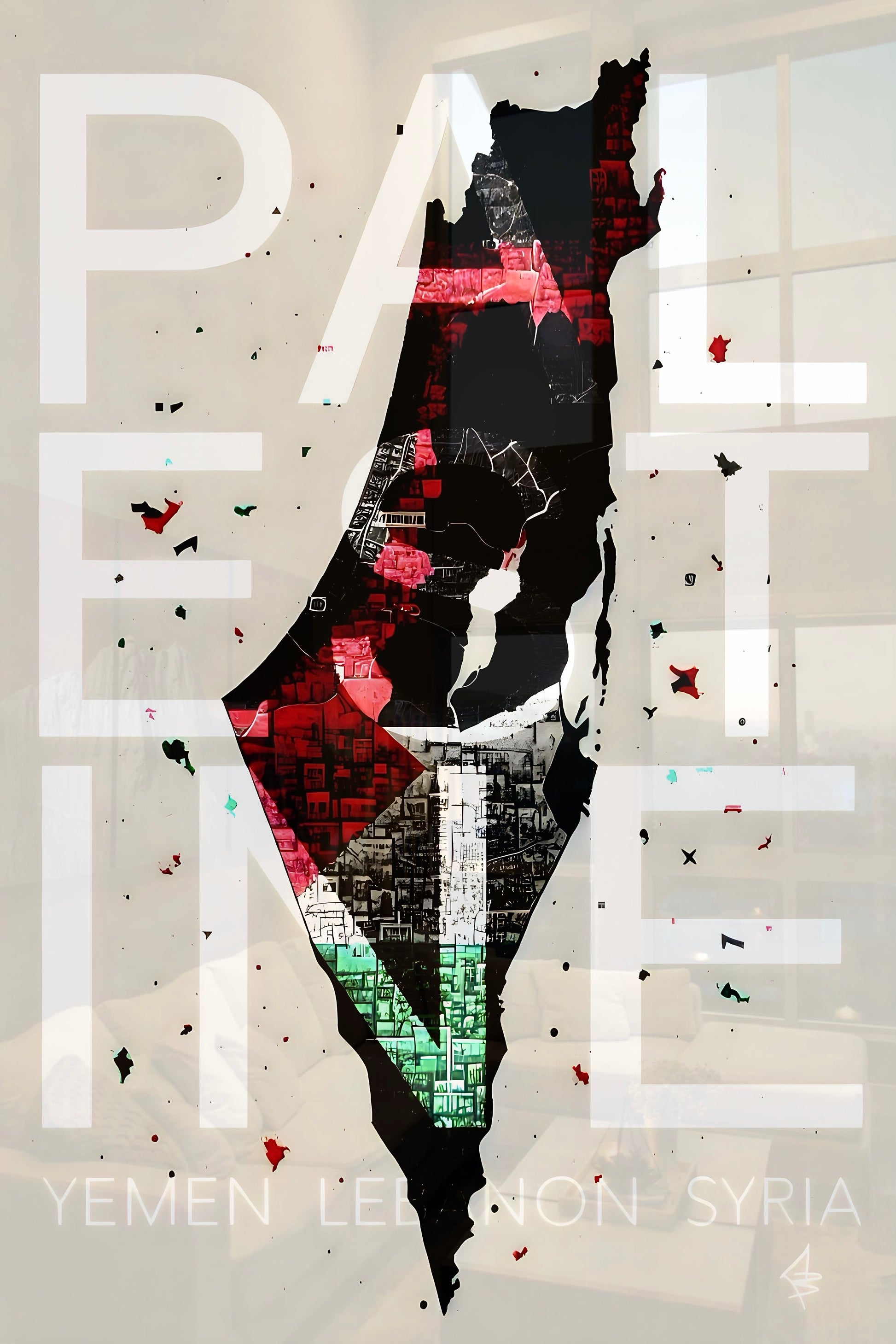 PAL EST INE - Yemen Lebanon Syria - Beige Islamic Glass Wall Art