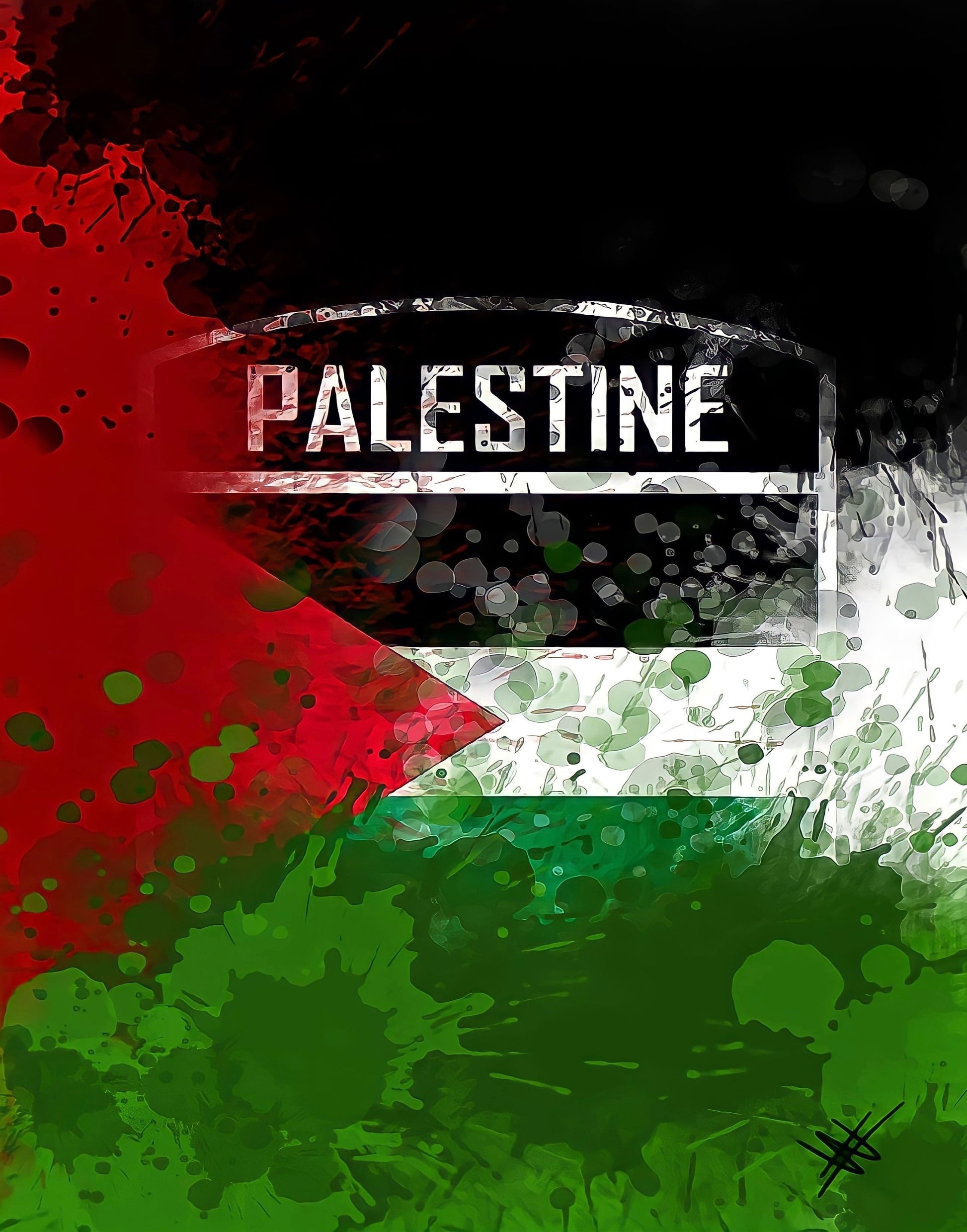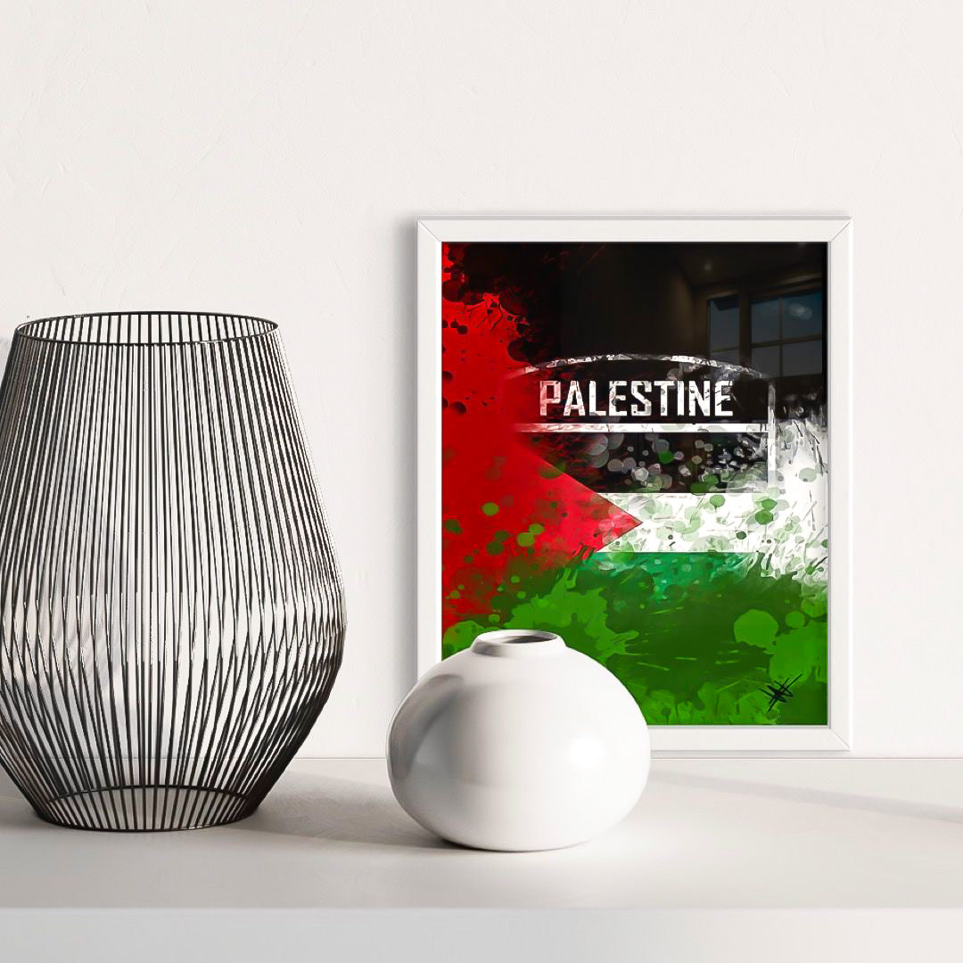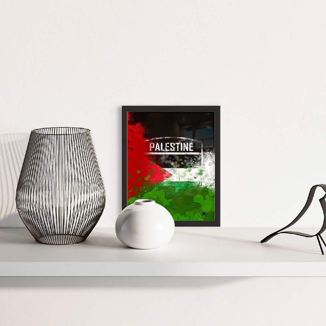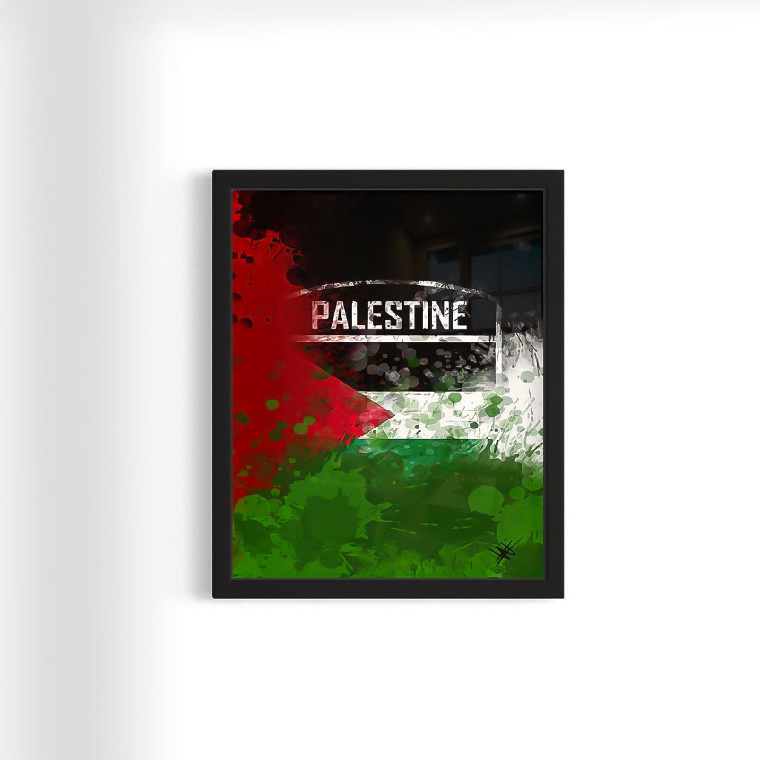 Title: Palestine Flag Emblem - Paint Splatter Framed Art Print
