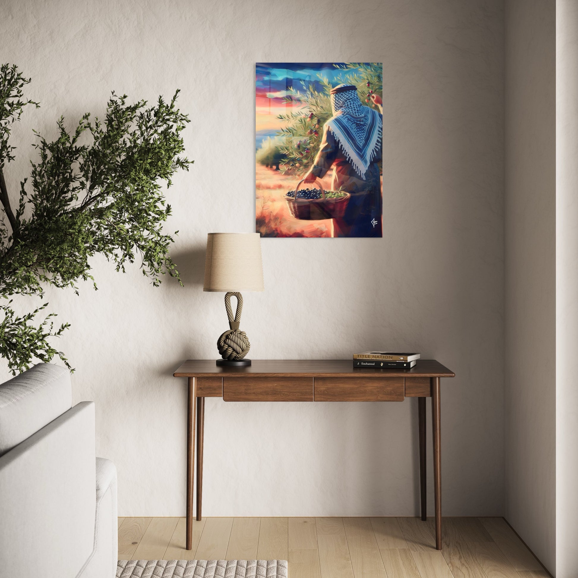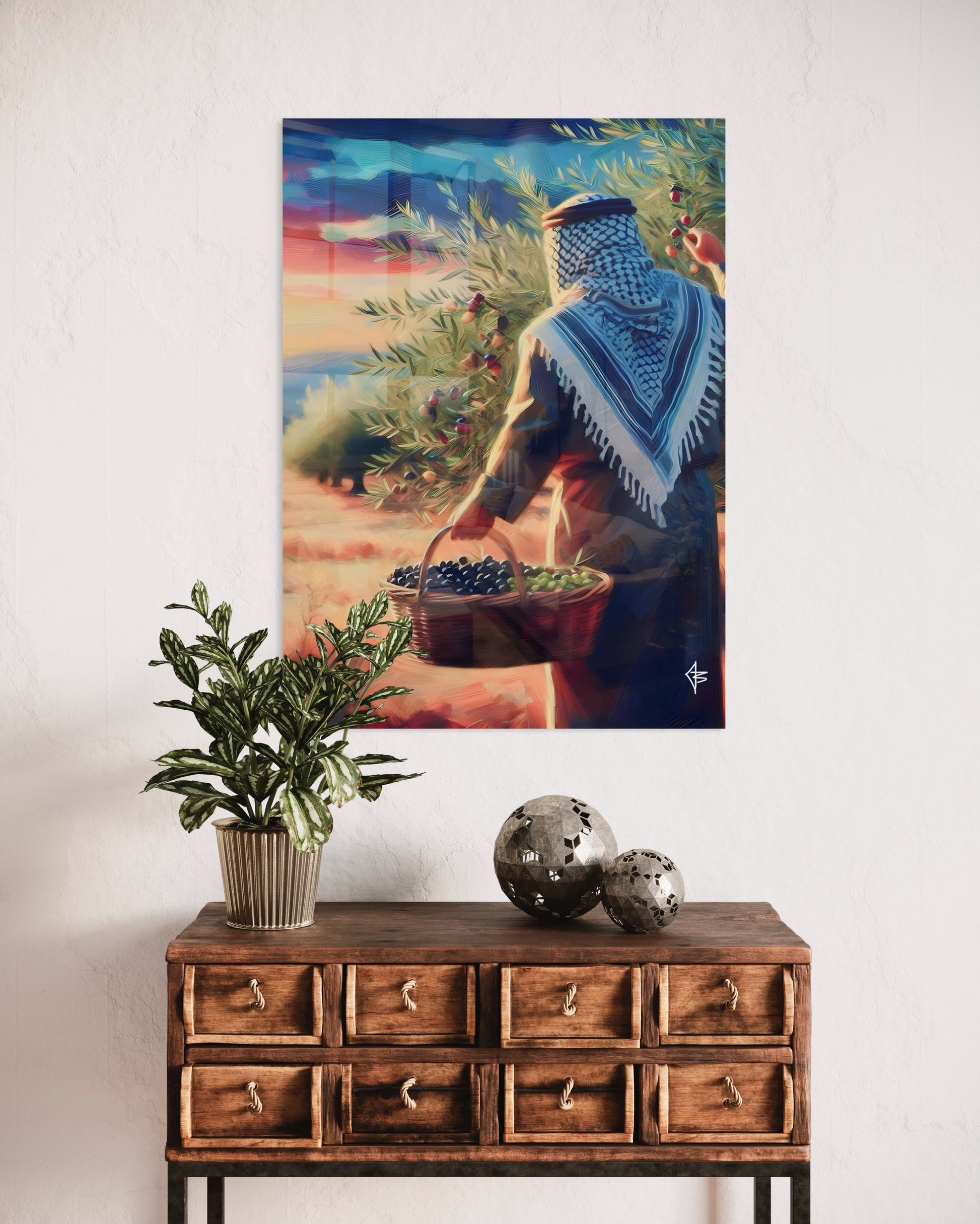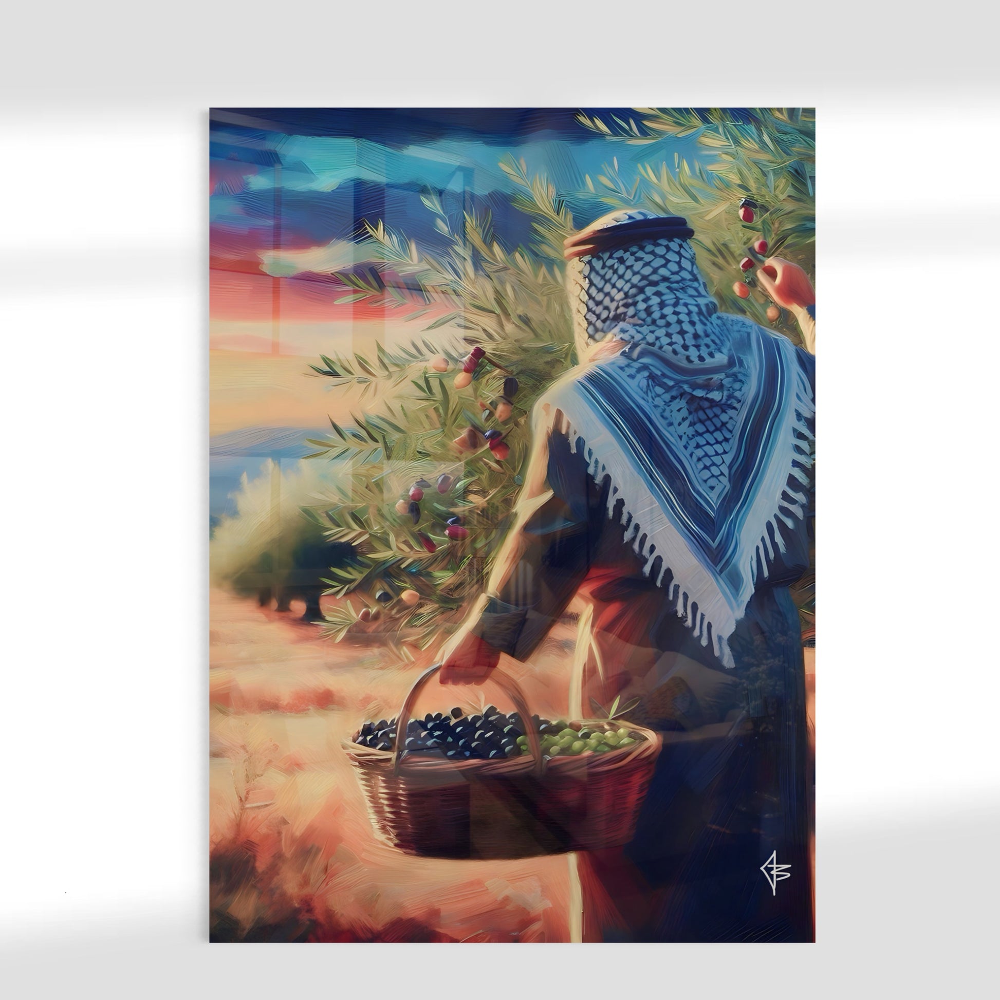 Title: The Olive Farmer - Palestine Glass Wall Art