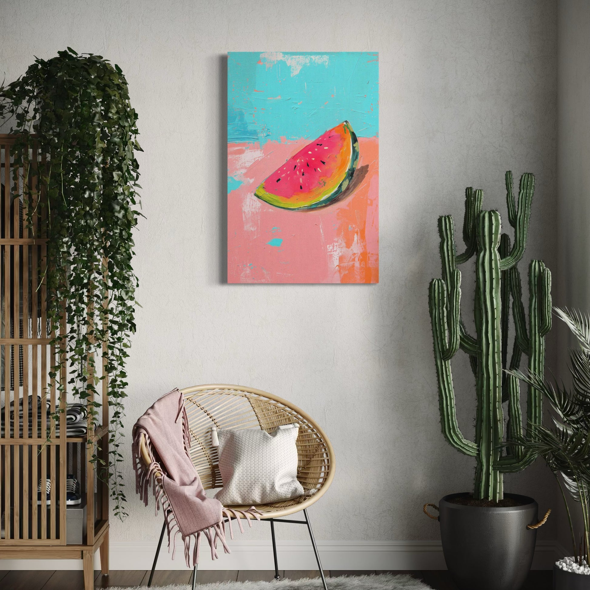 Printed on coated polyester canvas. Mounted on to a 44mm box frame, ready to hang.